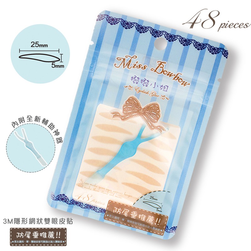 Missbowbow 撥撥小姐 雙眼皮貼 5號 條紋款中包裝 防尾垂推薦 附輔助棒 夾鏈袋