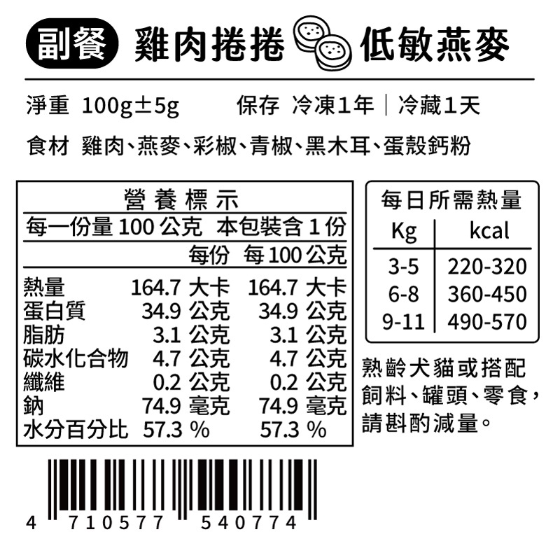 【汪事如意】寵物鮮食|雞肉捲捲-低敏燕麥
