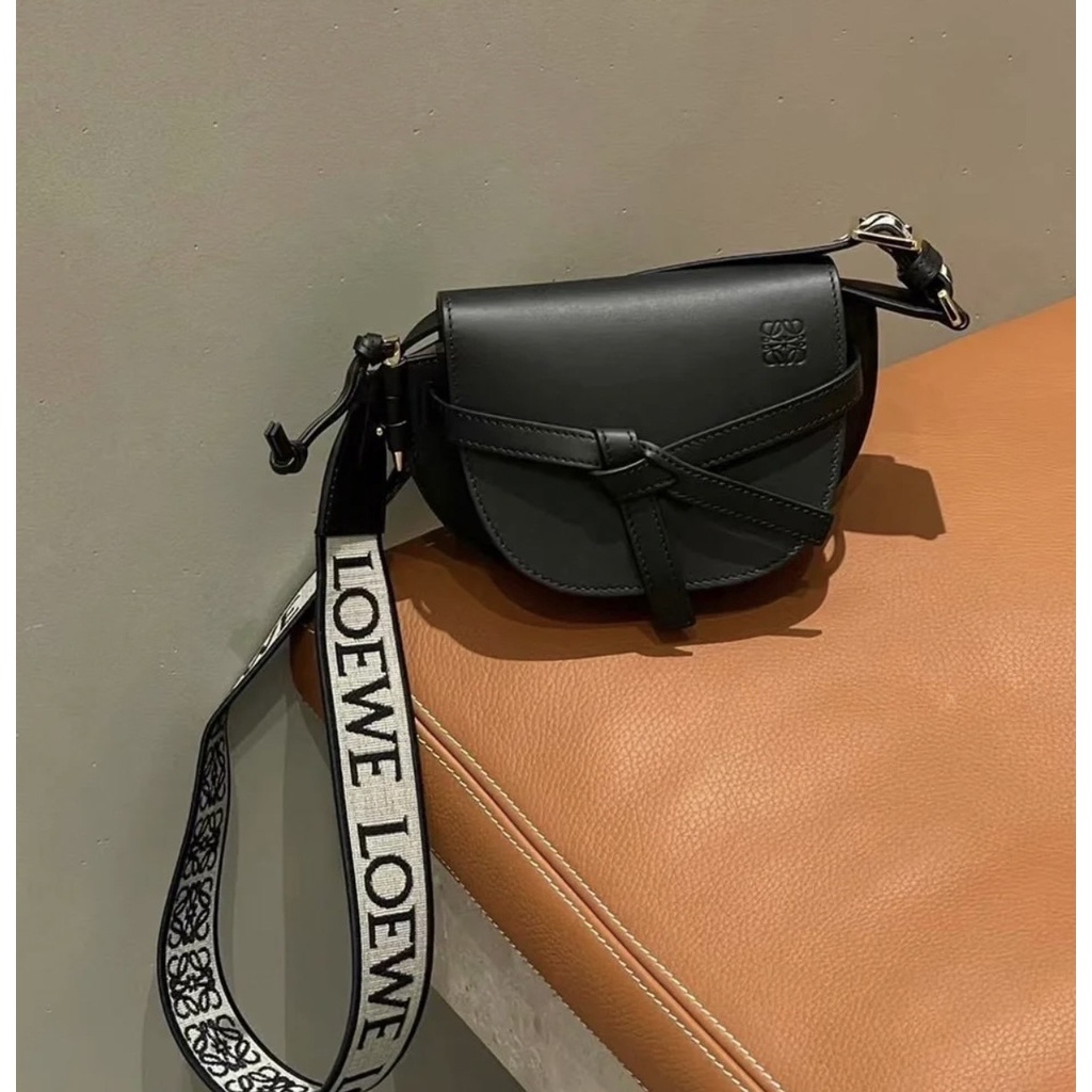 Loewe 柔軟小牛皮緹花迷你 Gate 包 黑色