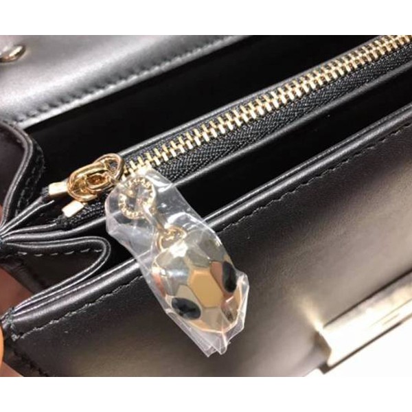 Bvlgari光滑小牛皮掀蓋包 285774 Serpenti Hypnotic 黑白雙色