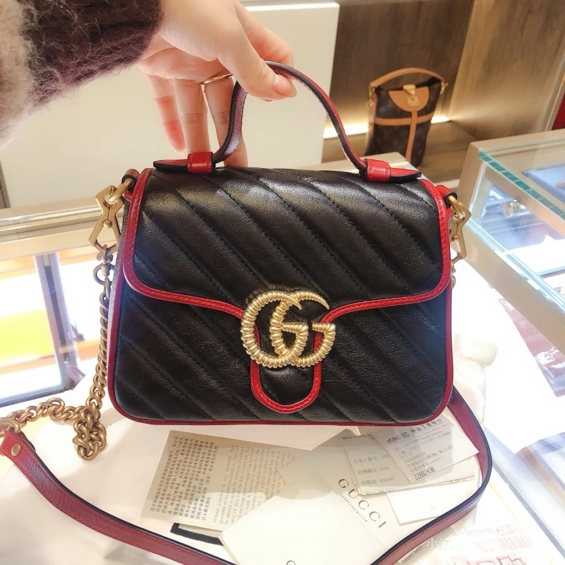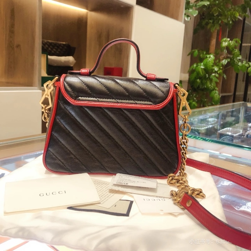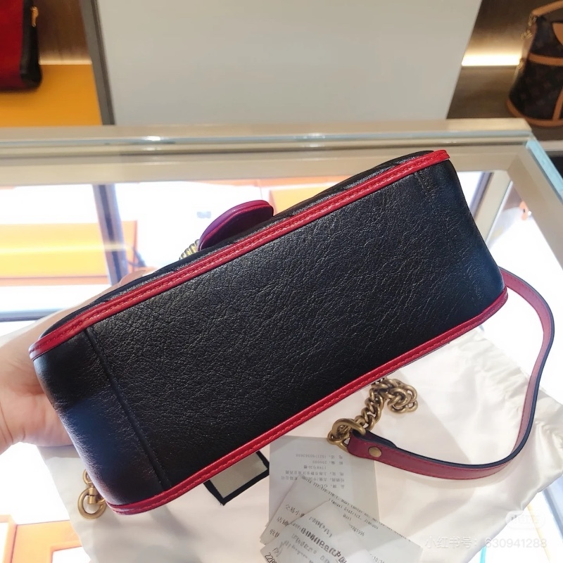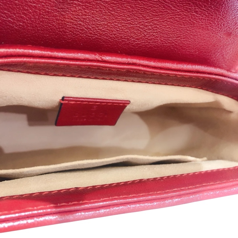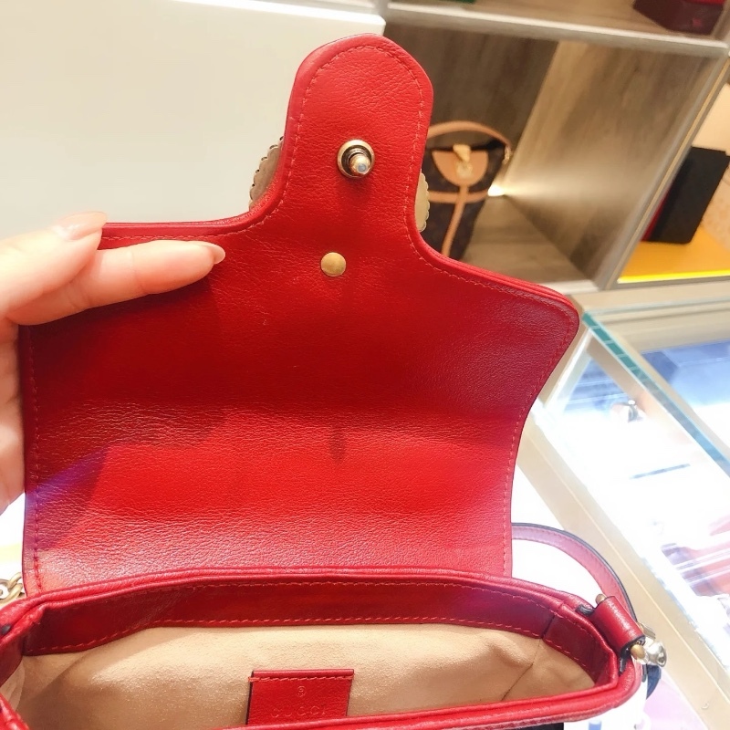 Gucci 583571 迷你 GG Marmont 兩用包 櫻桃紅滾邊配色