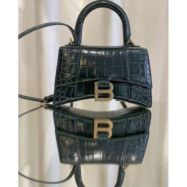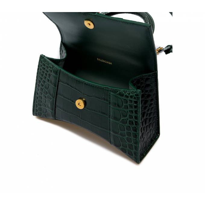Balenciaga Hourglass XS 鱷魚紋小牛皮沙漏2用包 綠色