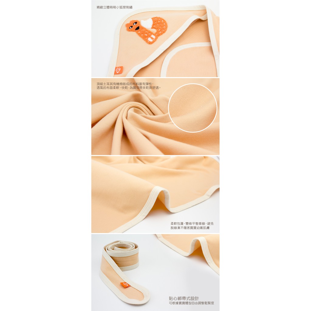 Hipopipo小西波【100%有機棉】萌萌小狐三角包巾 嬰兒包巾 推車蓋毯(綁帶) 新生兒包巾 有機棉包巾