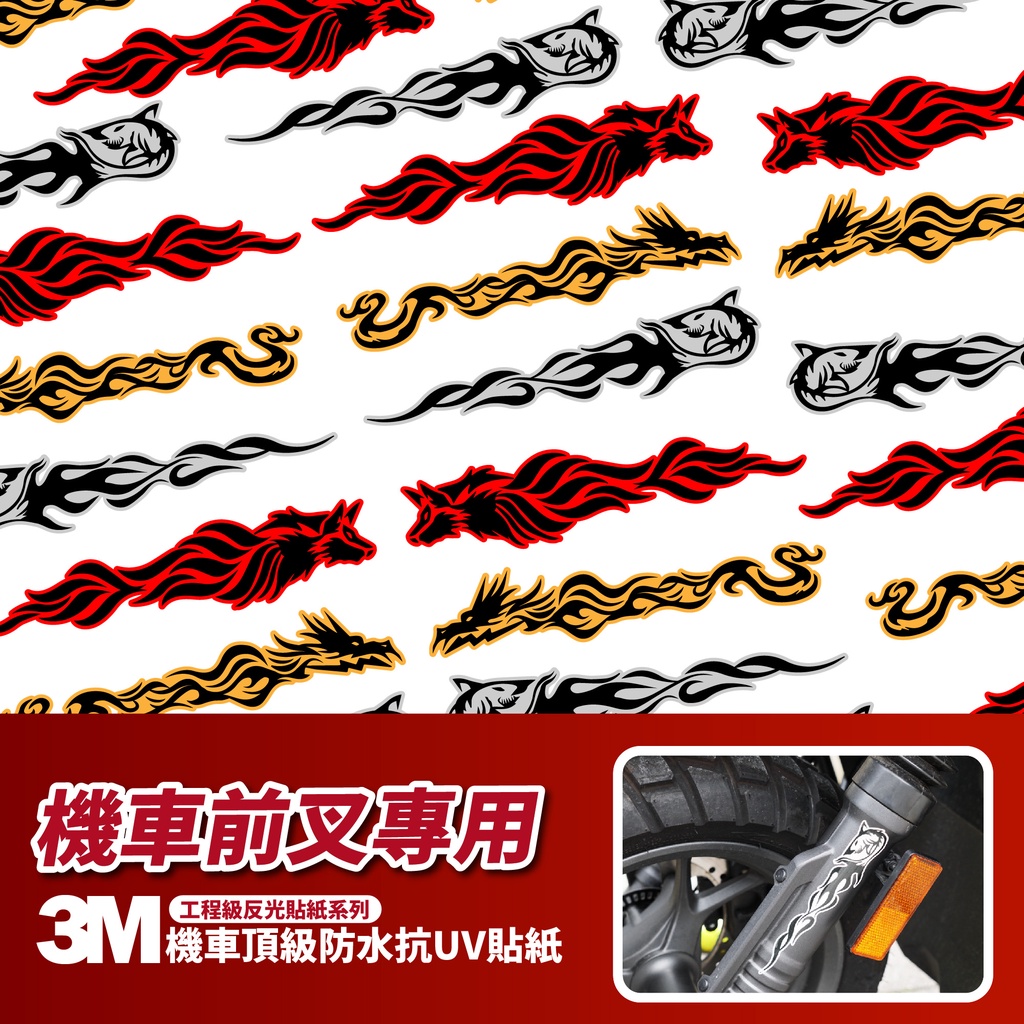 3M 工程級反光貼紙【機車前叉貼紙】機車貼紙 汽車貼紙 車身貼紙 機車前叉貼紙 防水貼紙 火焰貼紙 動物貼紙