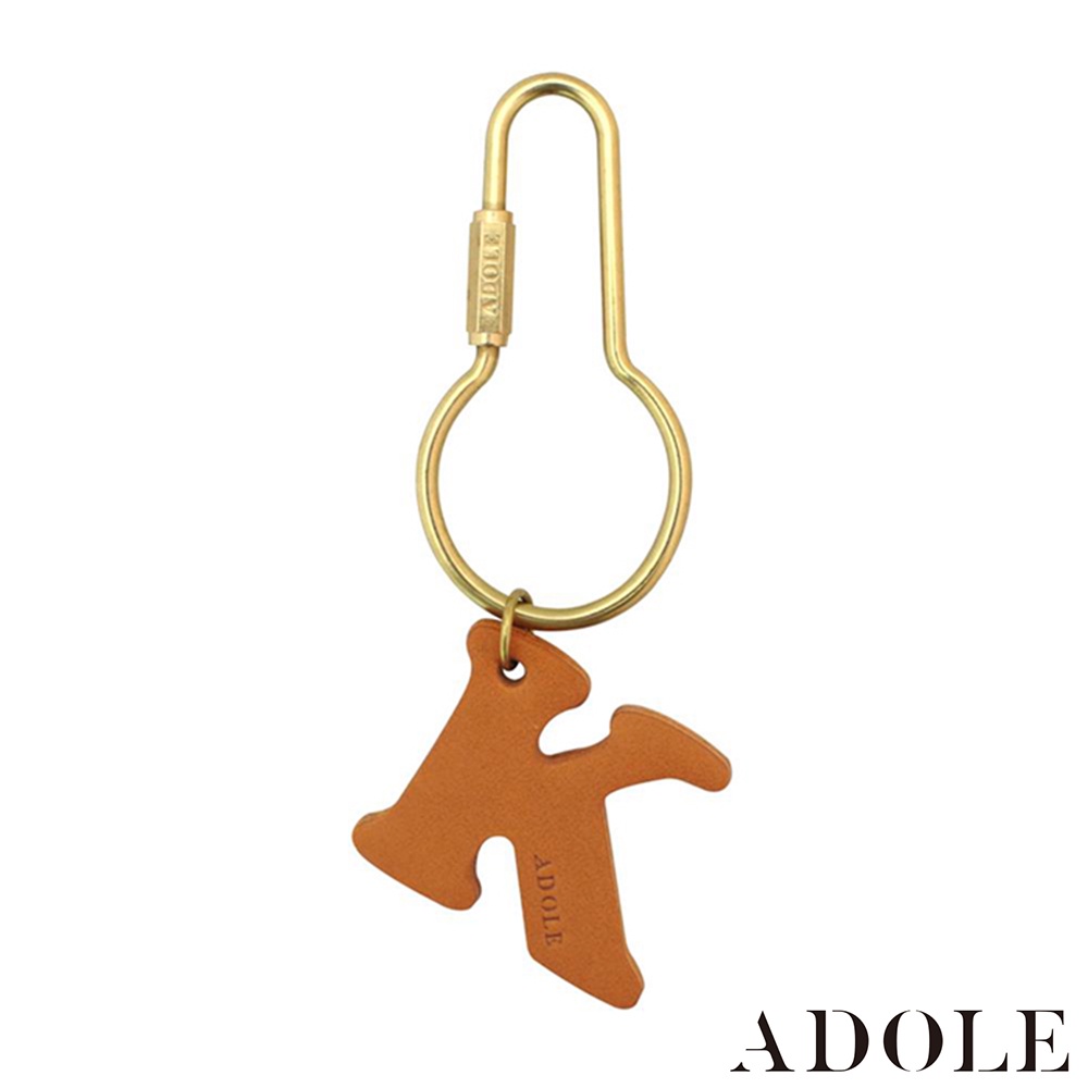 【ADOLE】真皮字母手工黃銅鑰匙圈圓壺(字母任選)│真皮吊飾