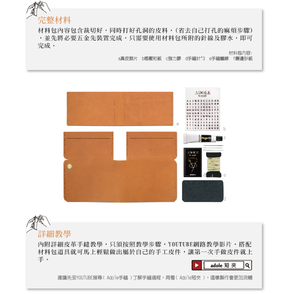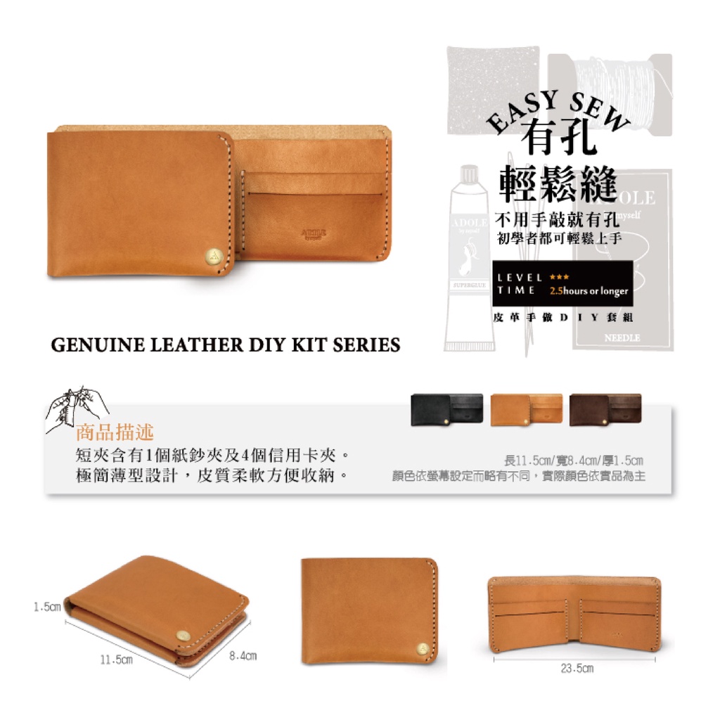 【ADOLE】DIY真皮短夾(棕)│頭層牛皮 影片教學 客製刻印