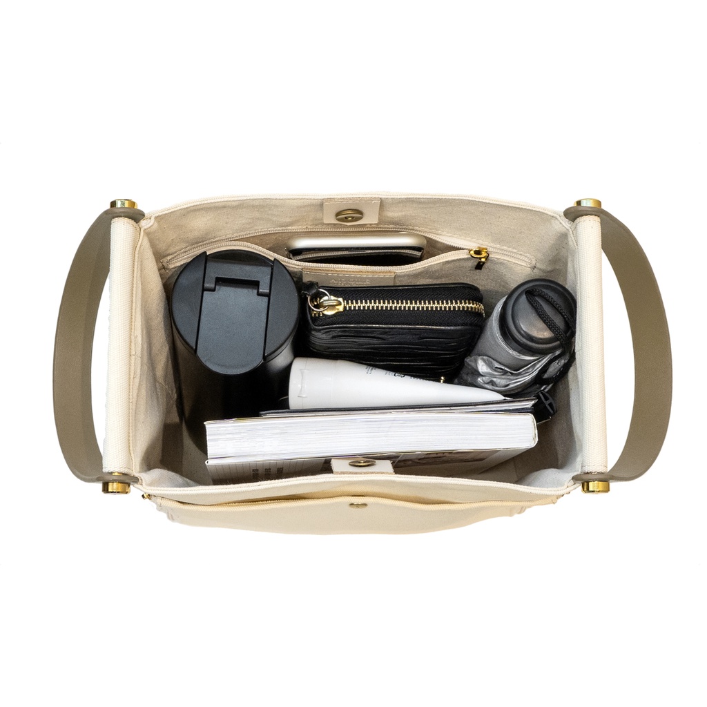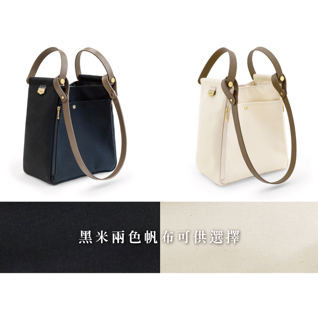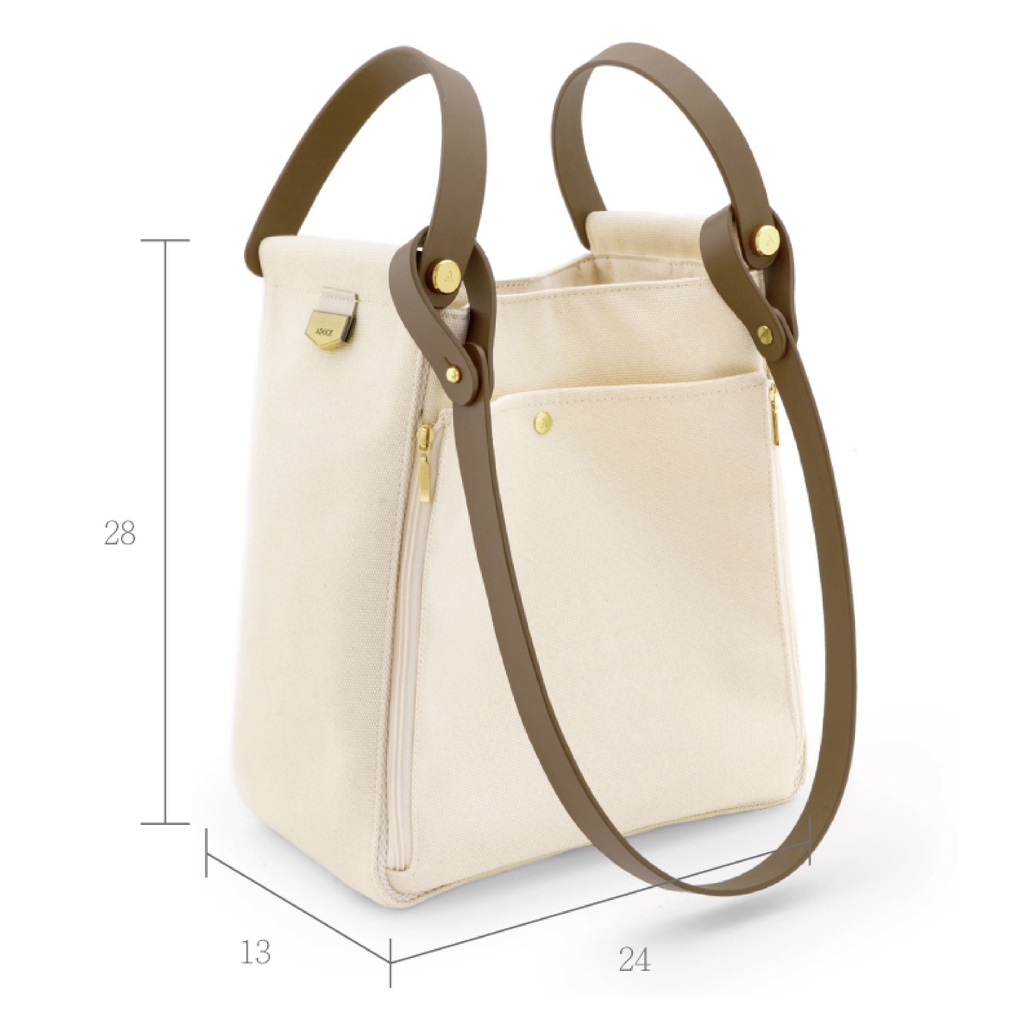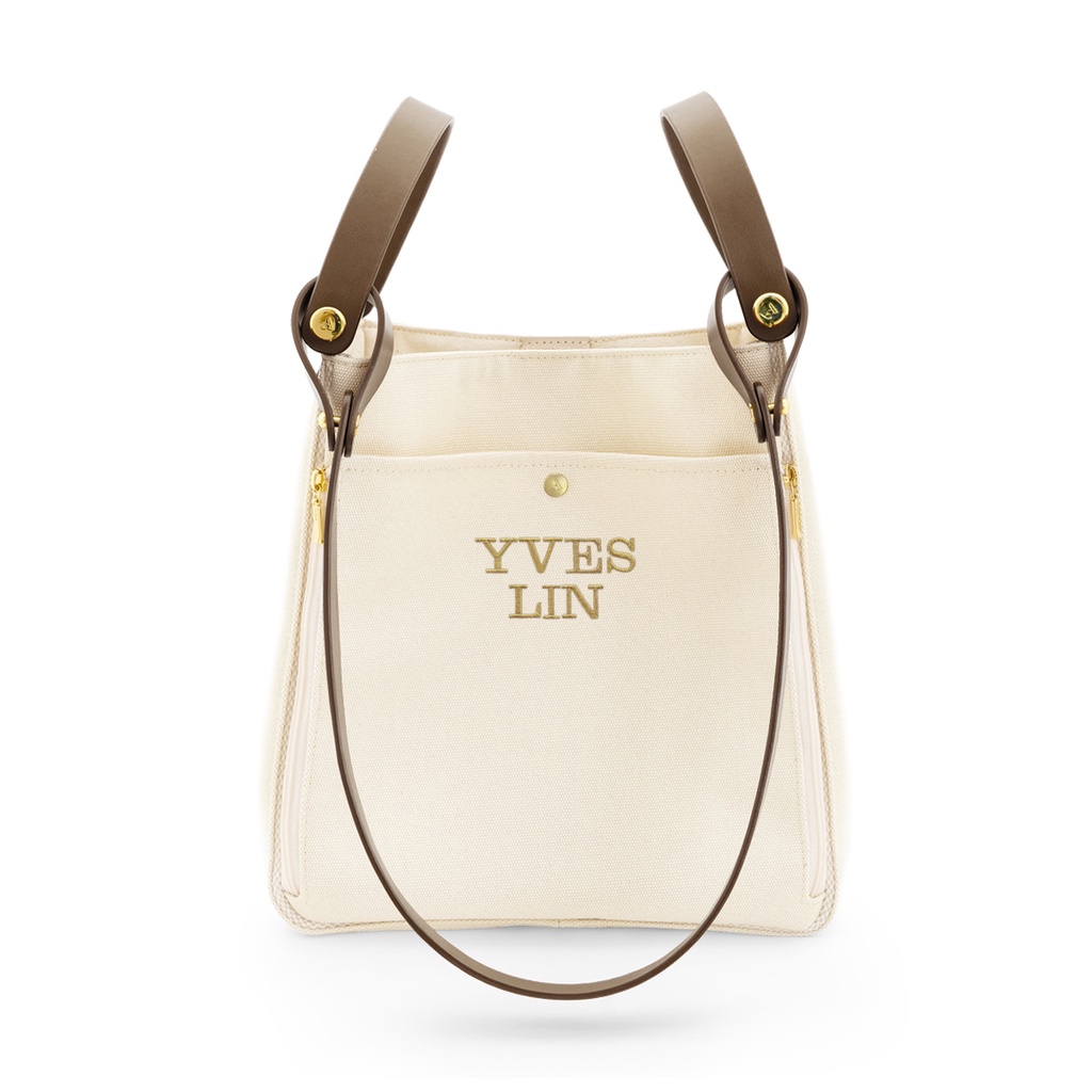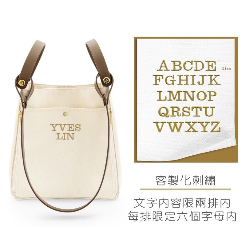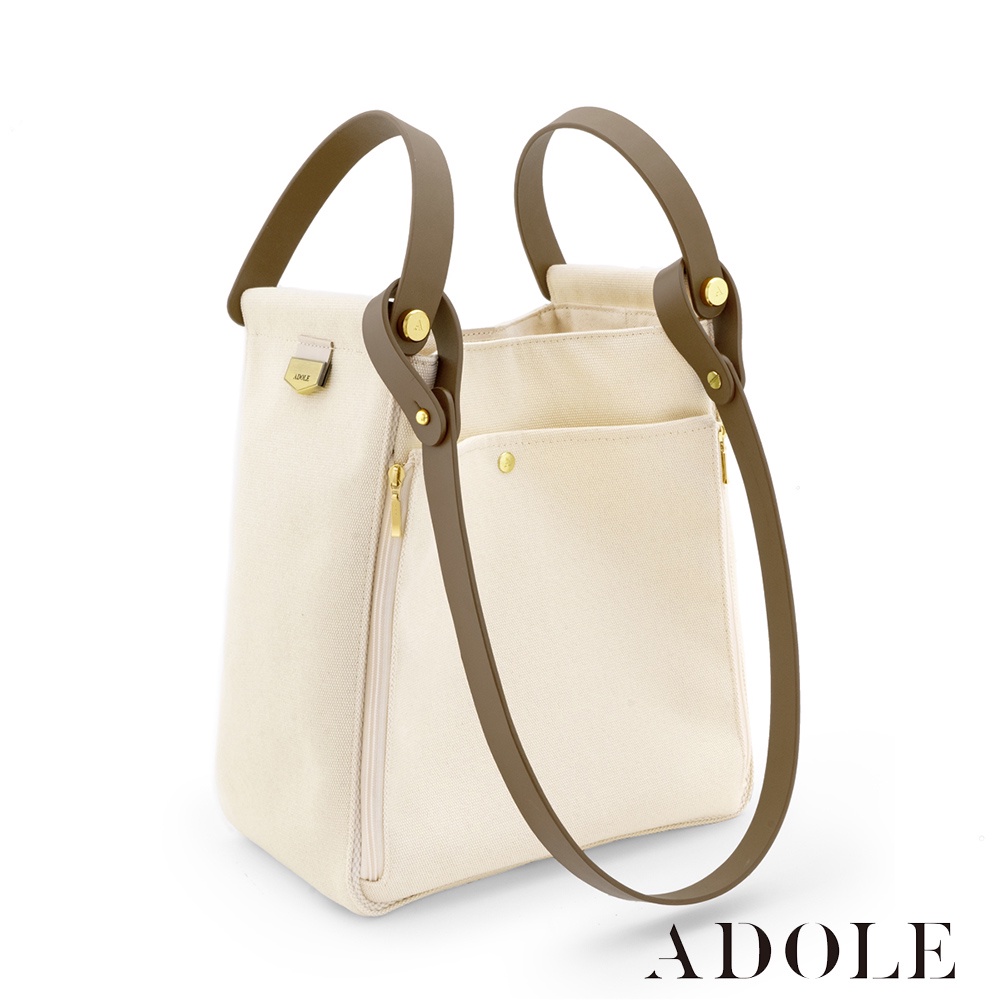 【ADOLE】刺繡手提肩背帆布包米色(摩卡提把)│Aday真皮組合 防潑水 客製化刺繡