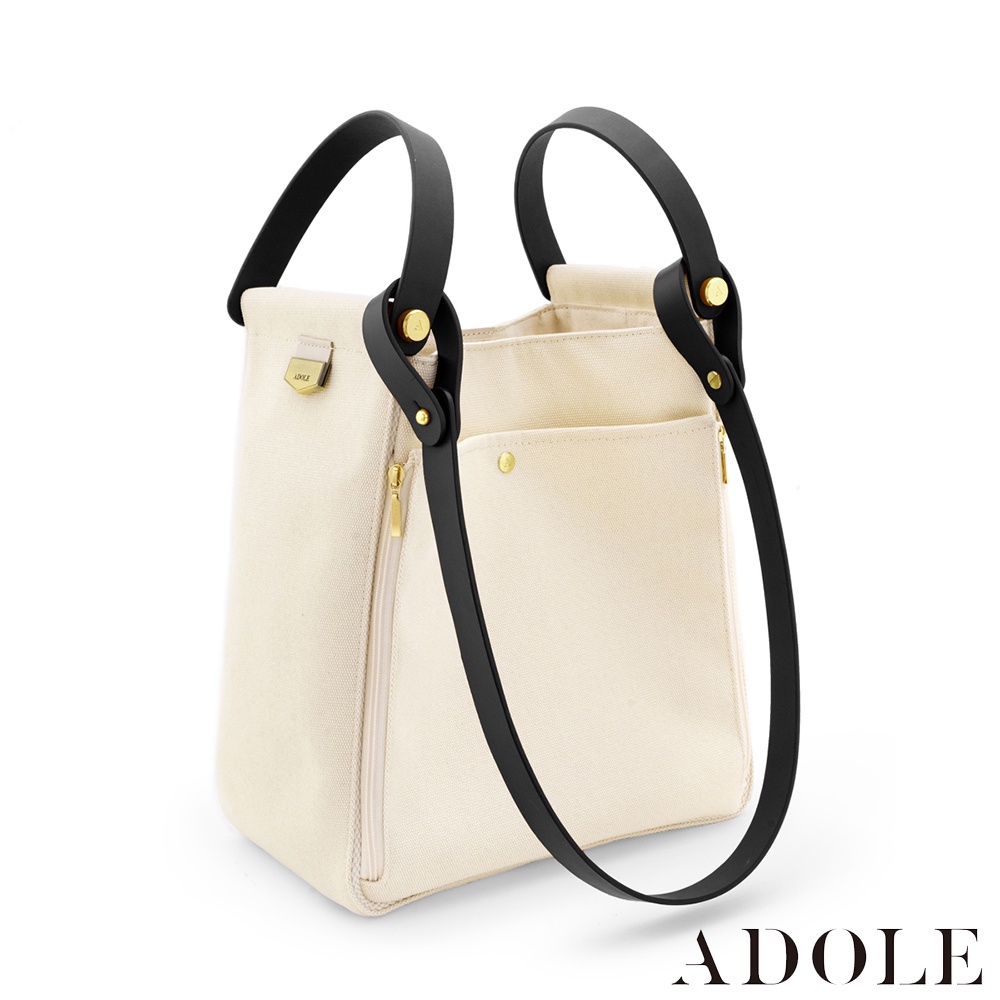 【ADOLE】刺繡手提肩背帆布包米色(黑提把)│Aday真皮組合 防潑水 客製化刺繡