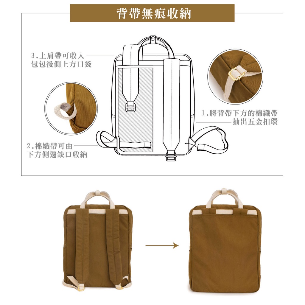 【ADOLE】COCA兩用防潑水後背包(駝)│筆電防撞層 手提包 公事包