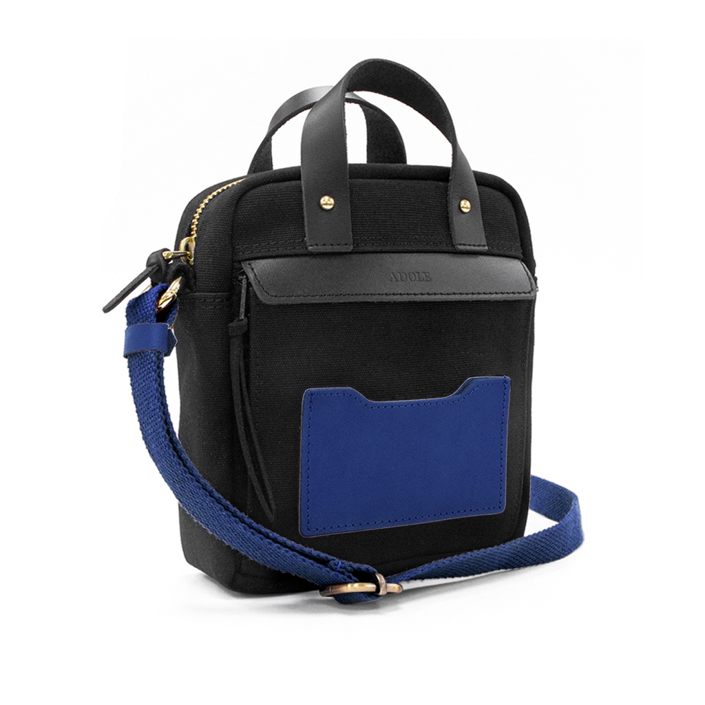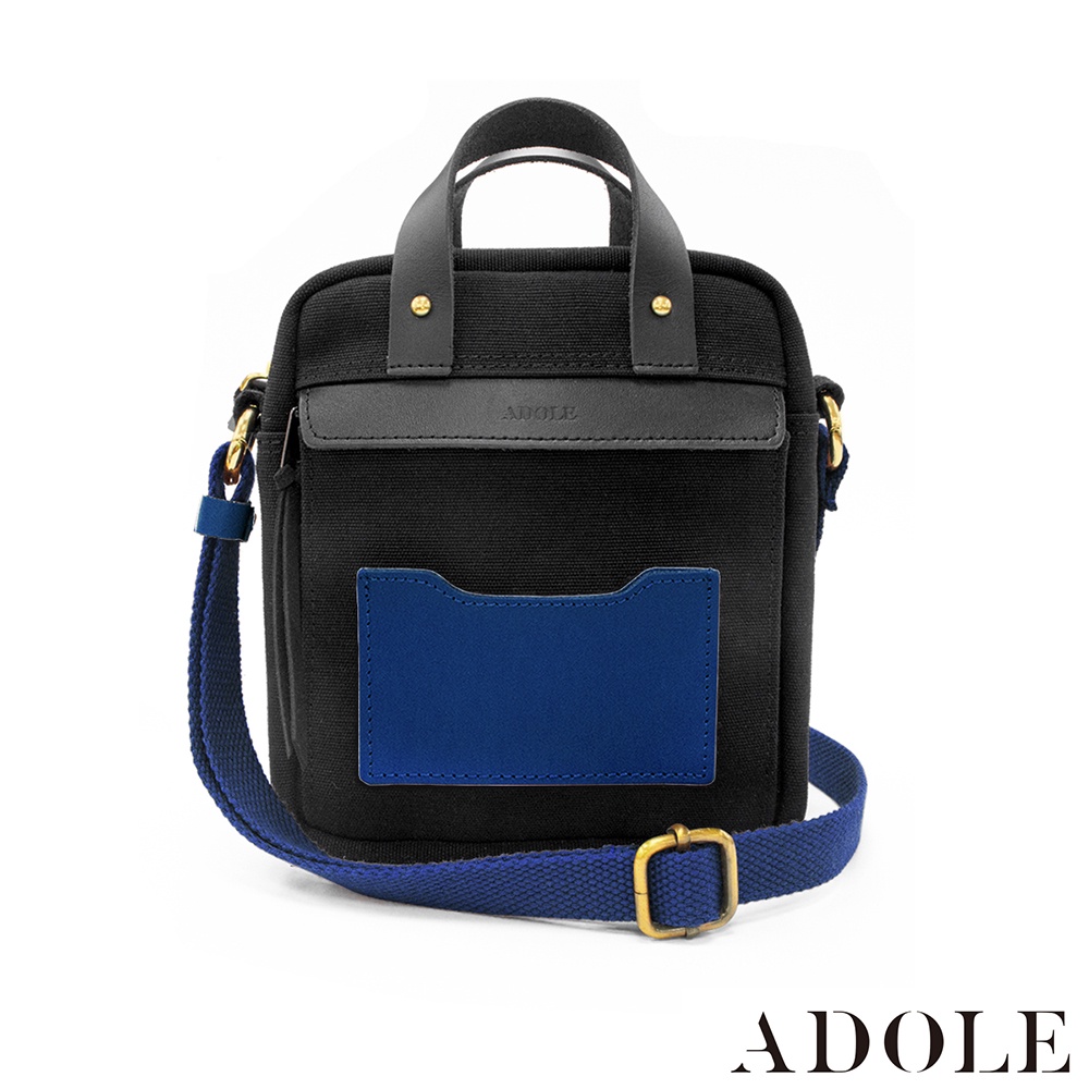 【ADOLE】隨行帆布小包黑色(藍)│Aday真皮組合 客製刻印 多夾層