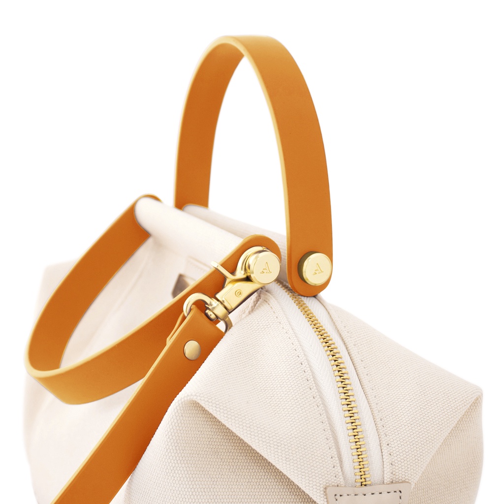 【ADOLE】拉鍊摺耳帆布包米色(棕背帶)│Aday真皮組合 水餃包 客製刻印