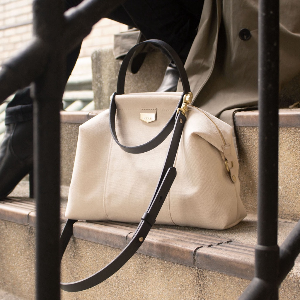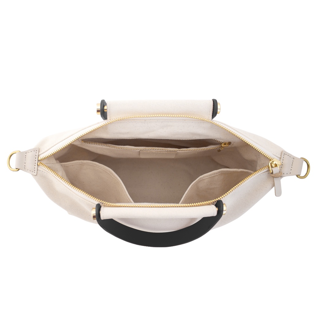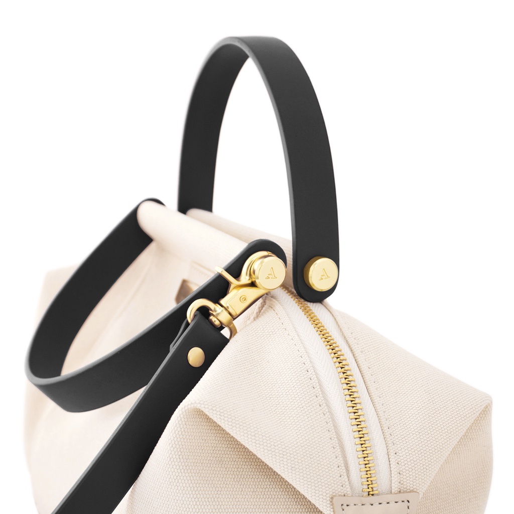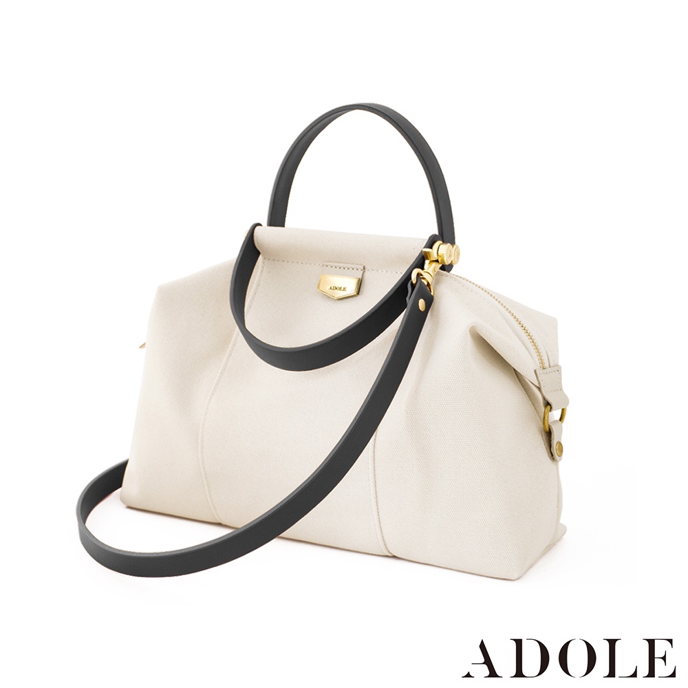 【ADOLE】拉鍊摺耳帆布包米色(黑背帶)│Aday真皮組合 水餃包 客製刻印