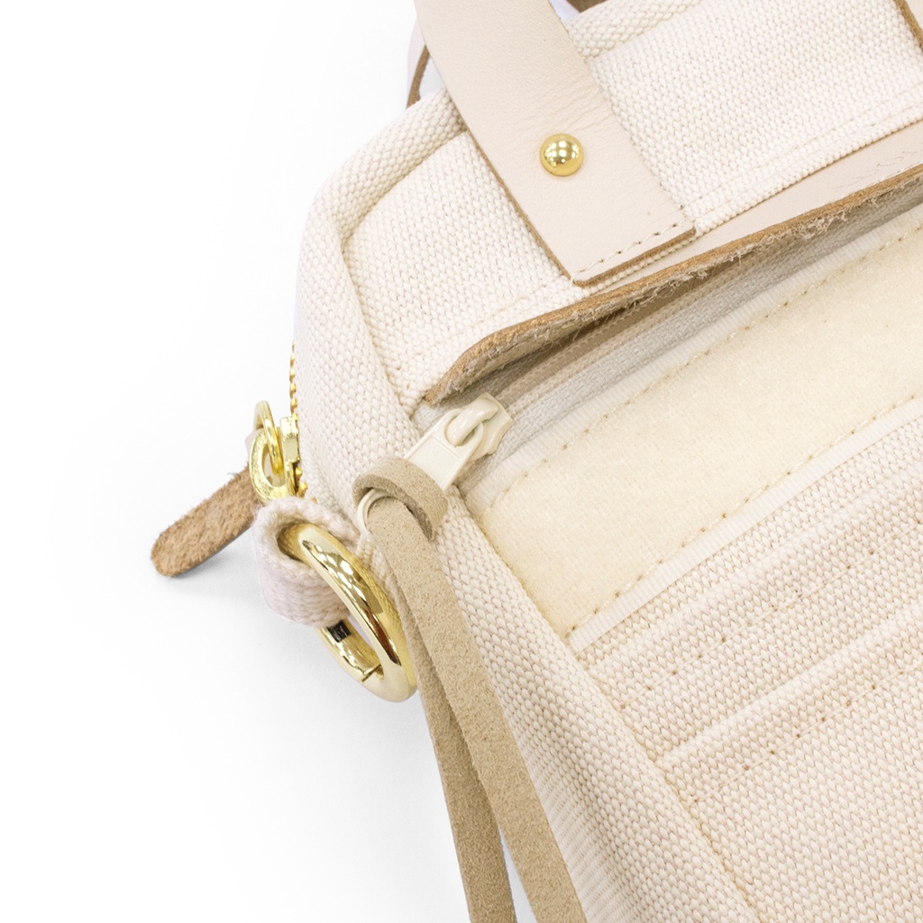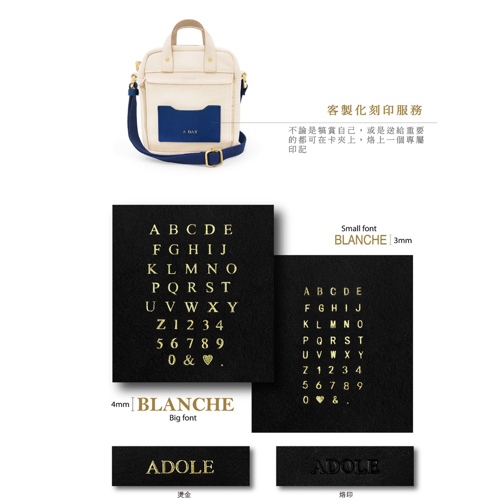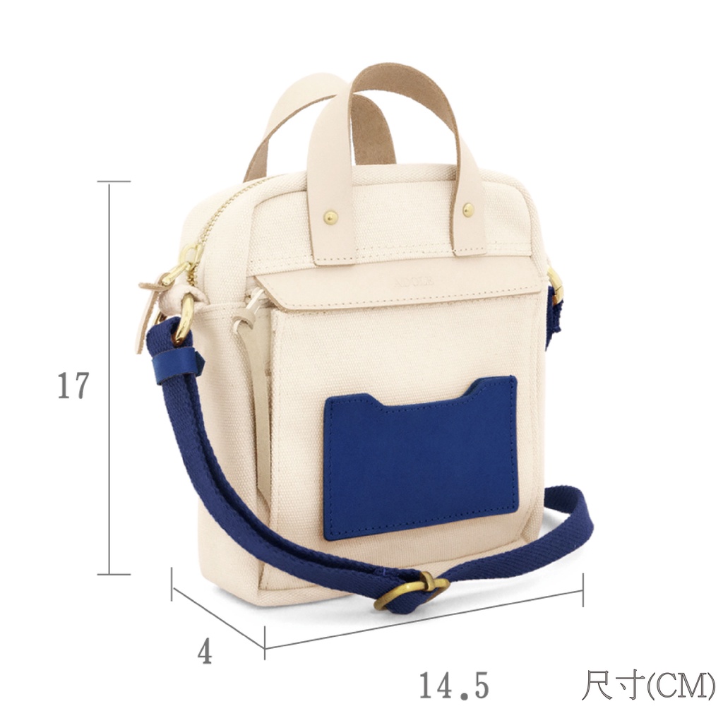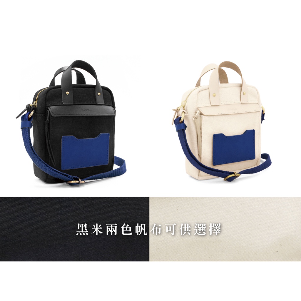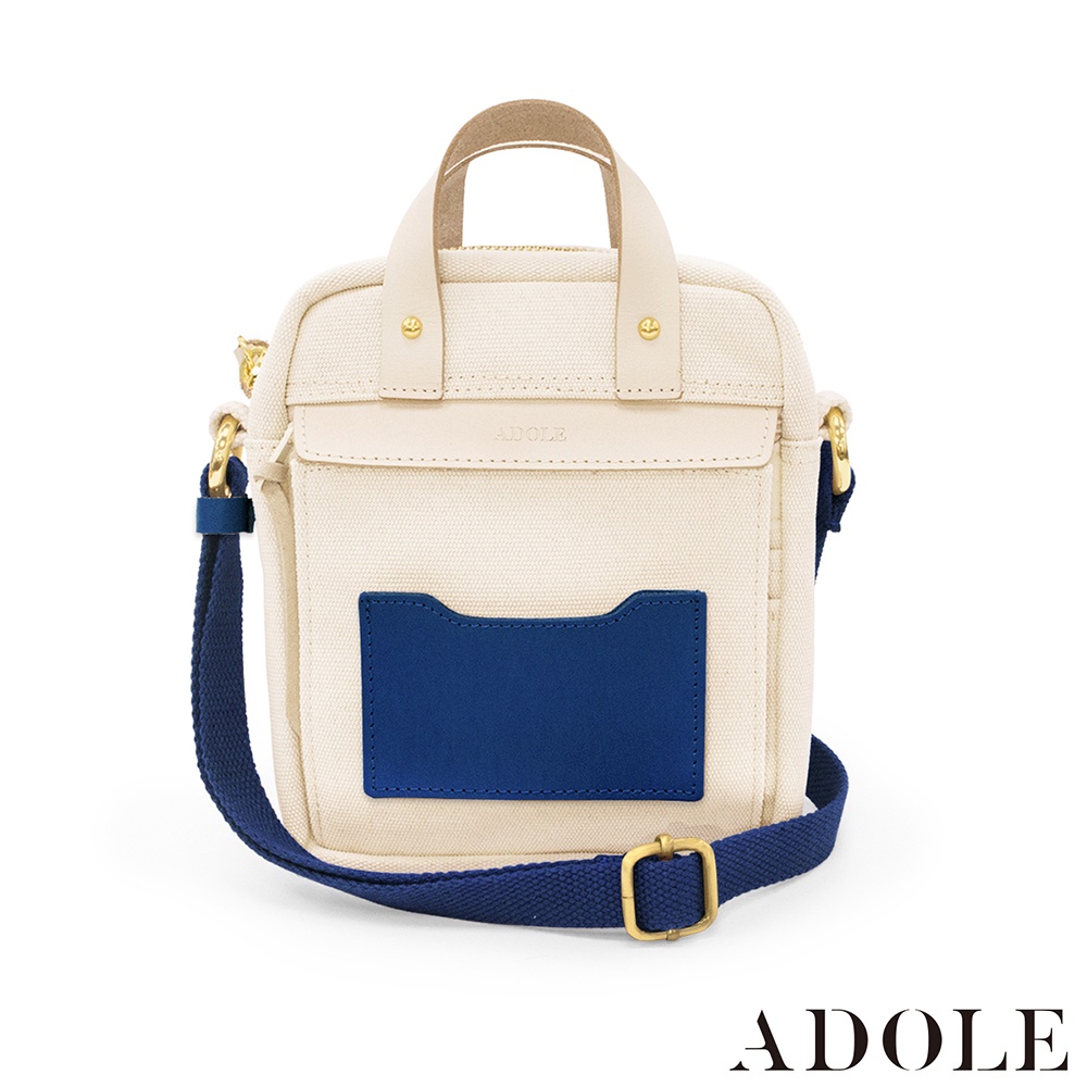 【ADOLE】隨行帆布小包米色(藍)│Aday真皮組合 客製刻印 多夾層