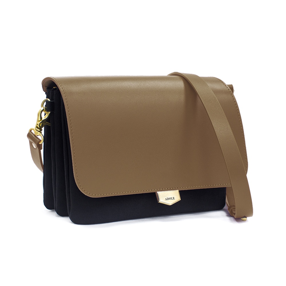 【ADOLE】真皮袋蓋三層帆布包黑色(摩卡)│Aday真皮組合 可放長夾 客製刻印