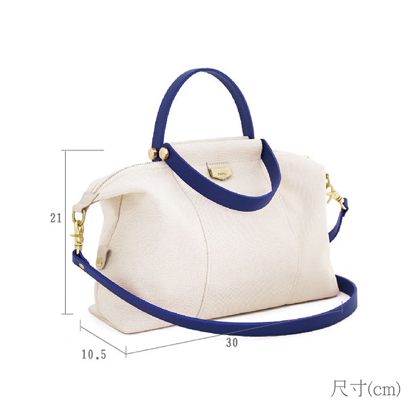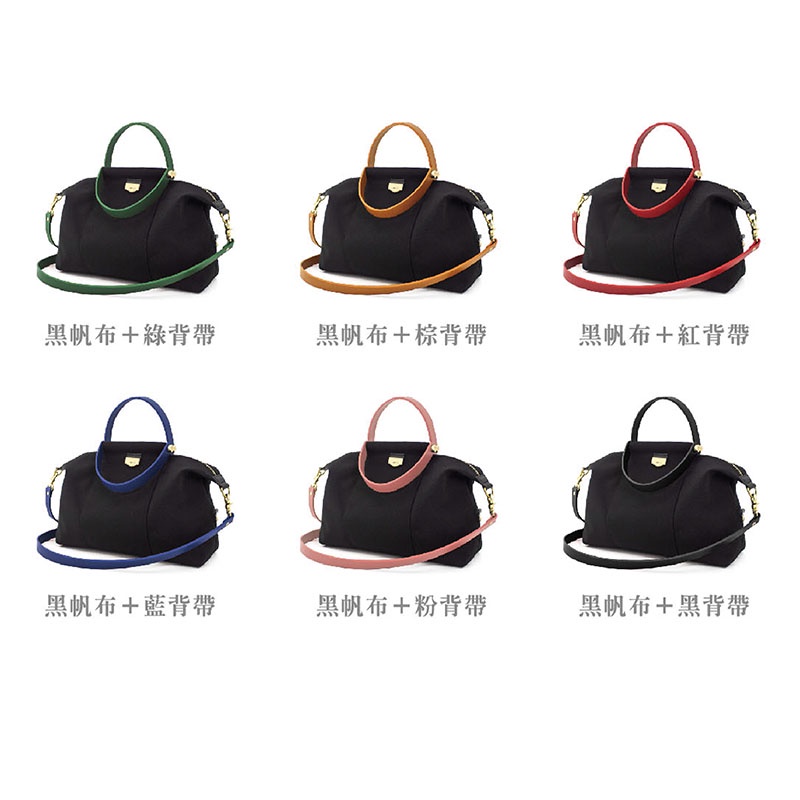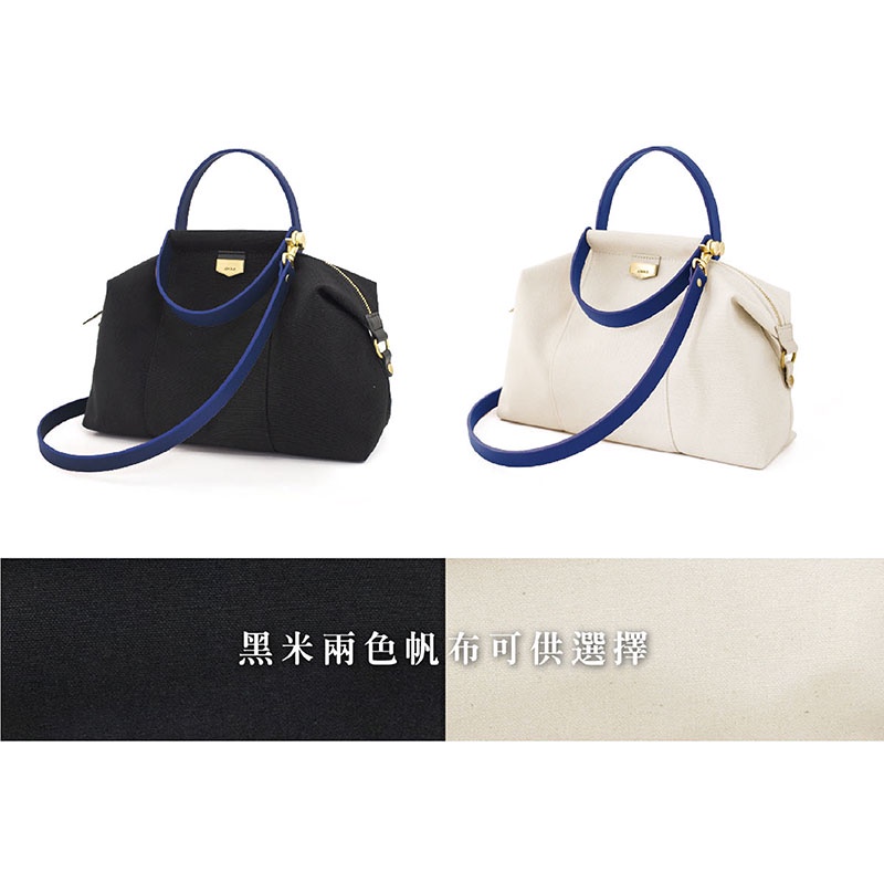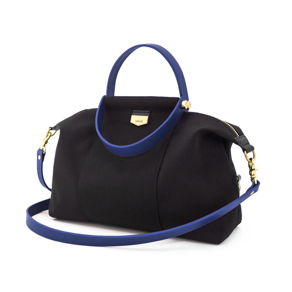 【ADOLE】拉鍊摺耳帆布包黑色(藍背帶)│Aday真皮組合 水餃包 客製刻印