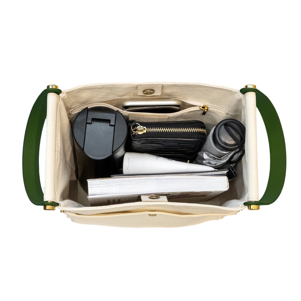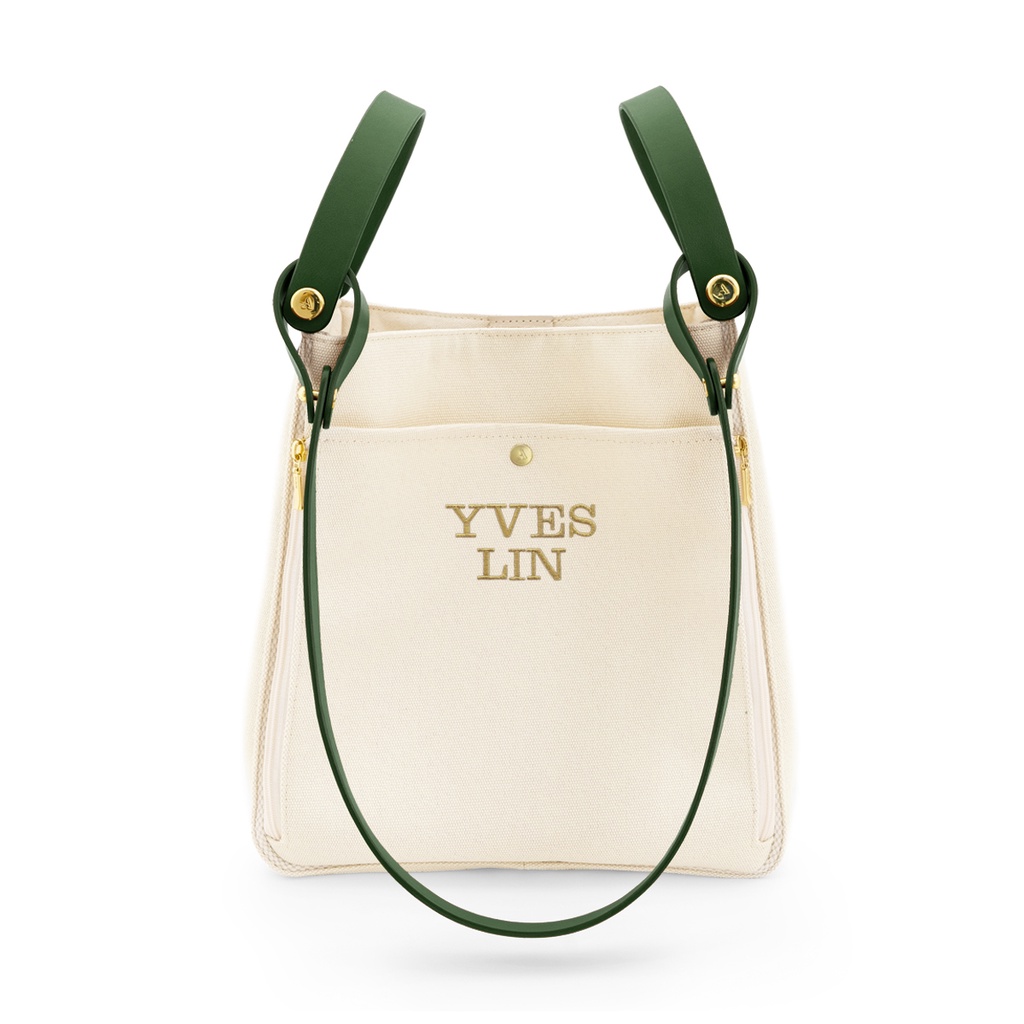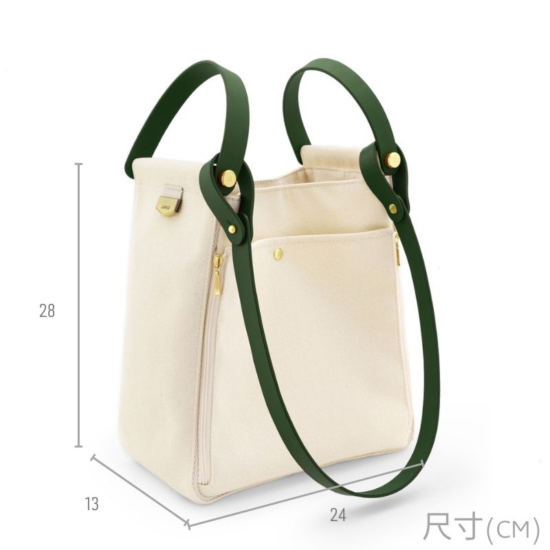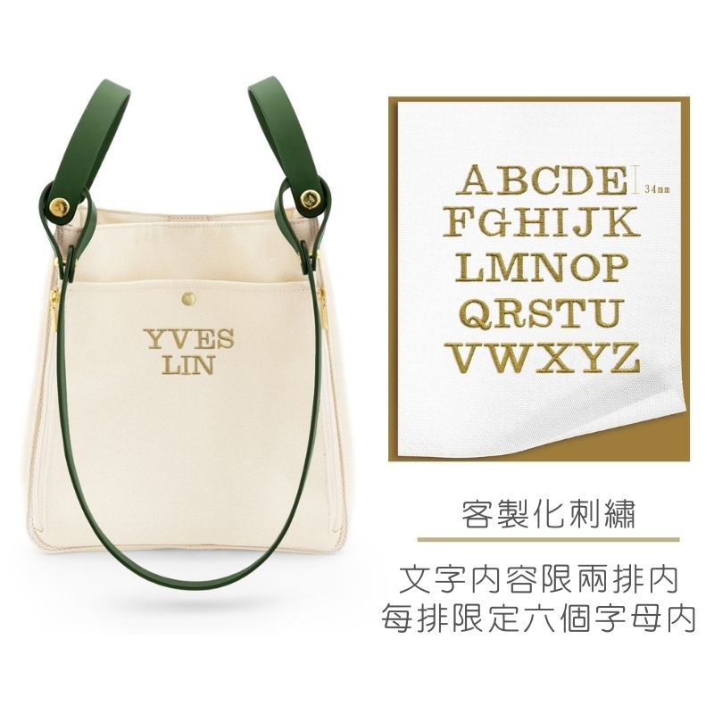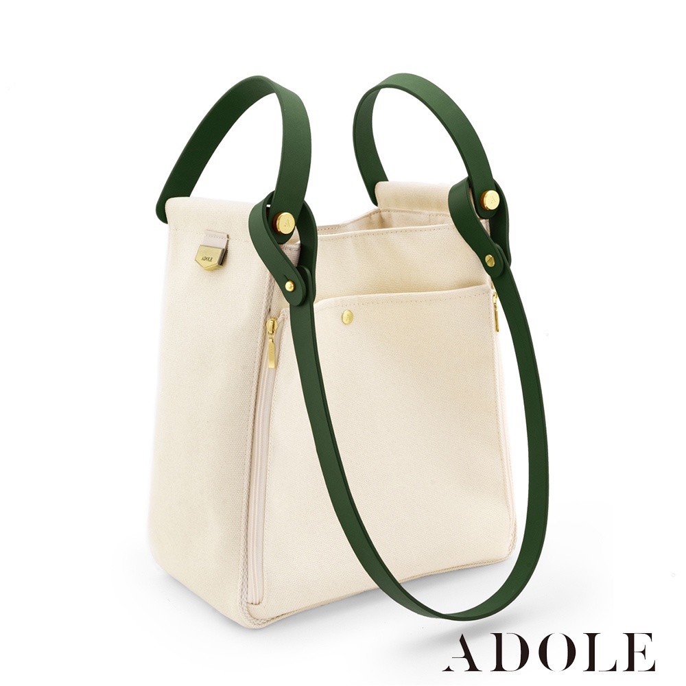 【ADOLE】刺繡手提肩背帆布包米色(綠提把)│Aday真皮組合 防潑水 客製化刺繡