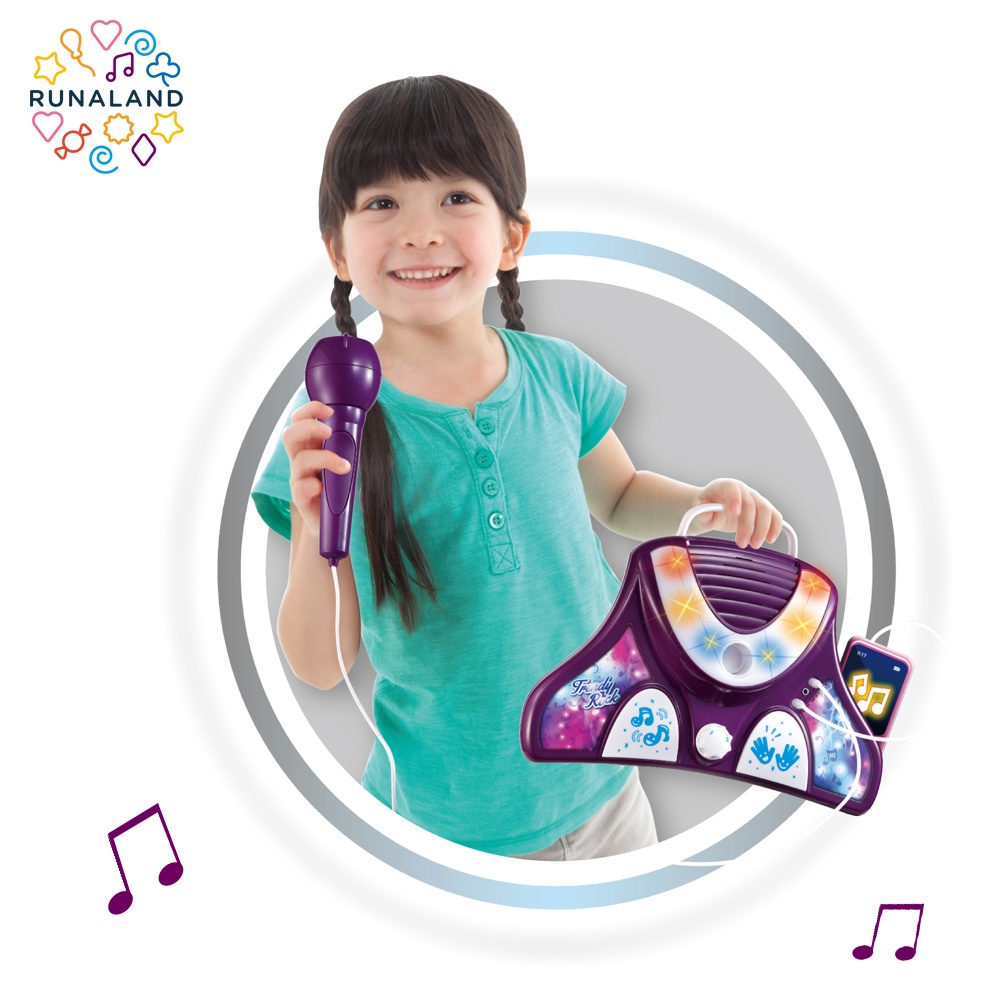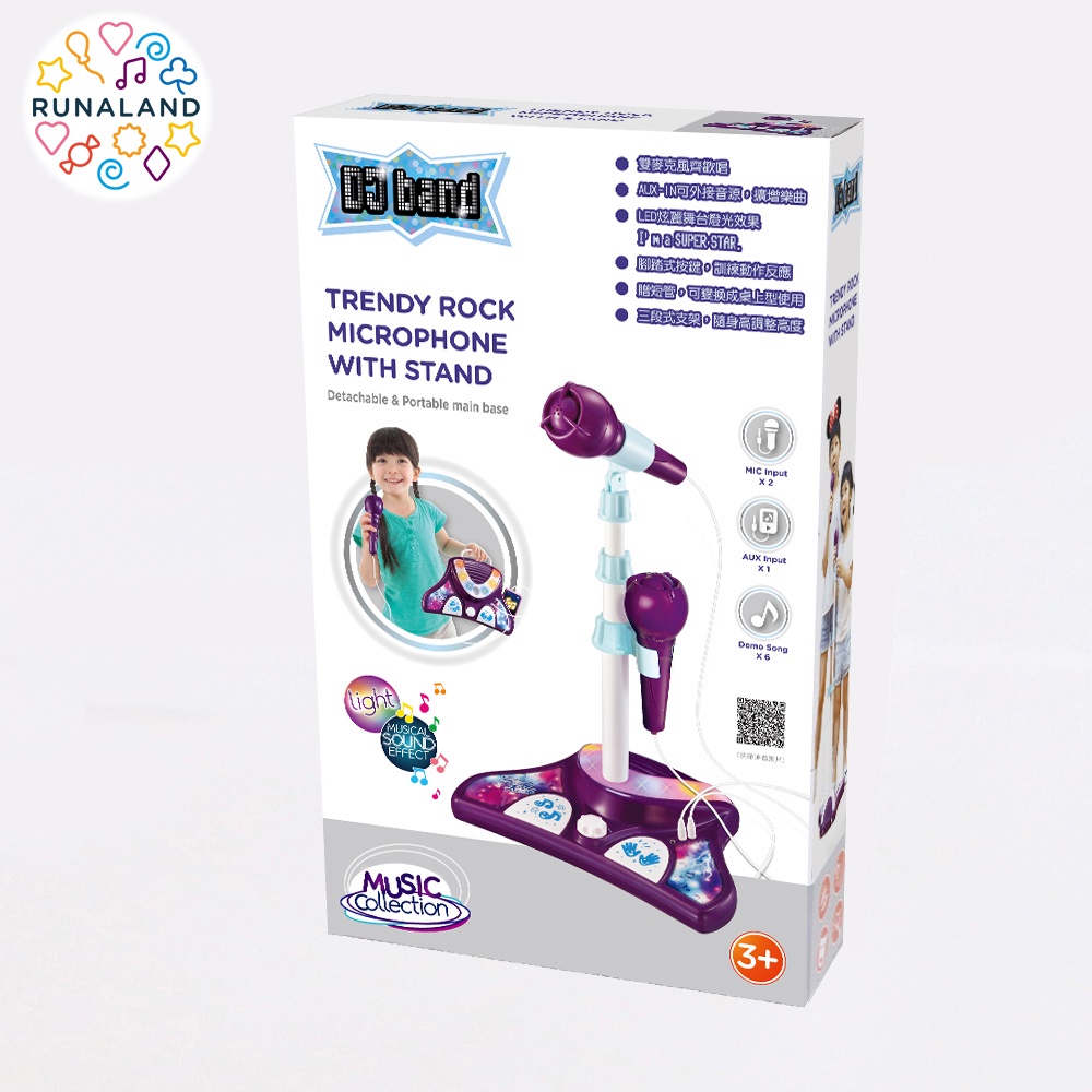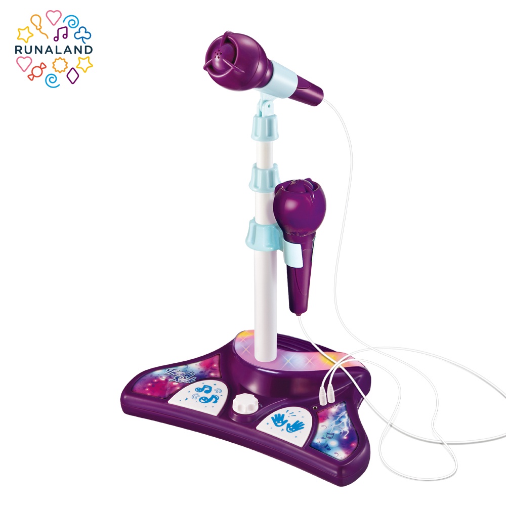 RUNALAND-時尚搖滾站立式麥克風(雙麥) 兒童麥克風玩具 唱歌麥克風 外接音樂 卡拉ok 聖誕禮物 生日禮物