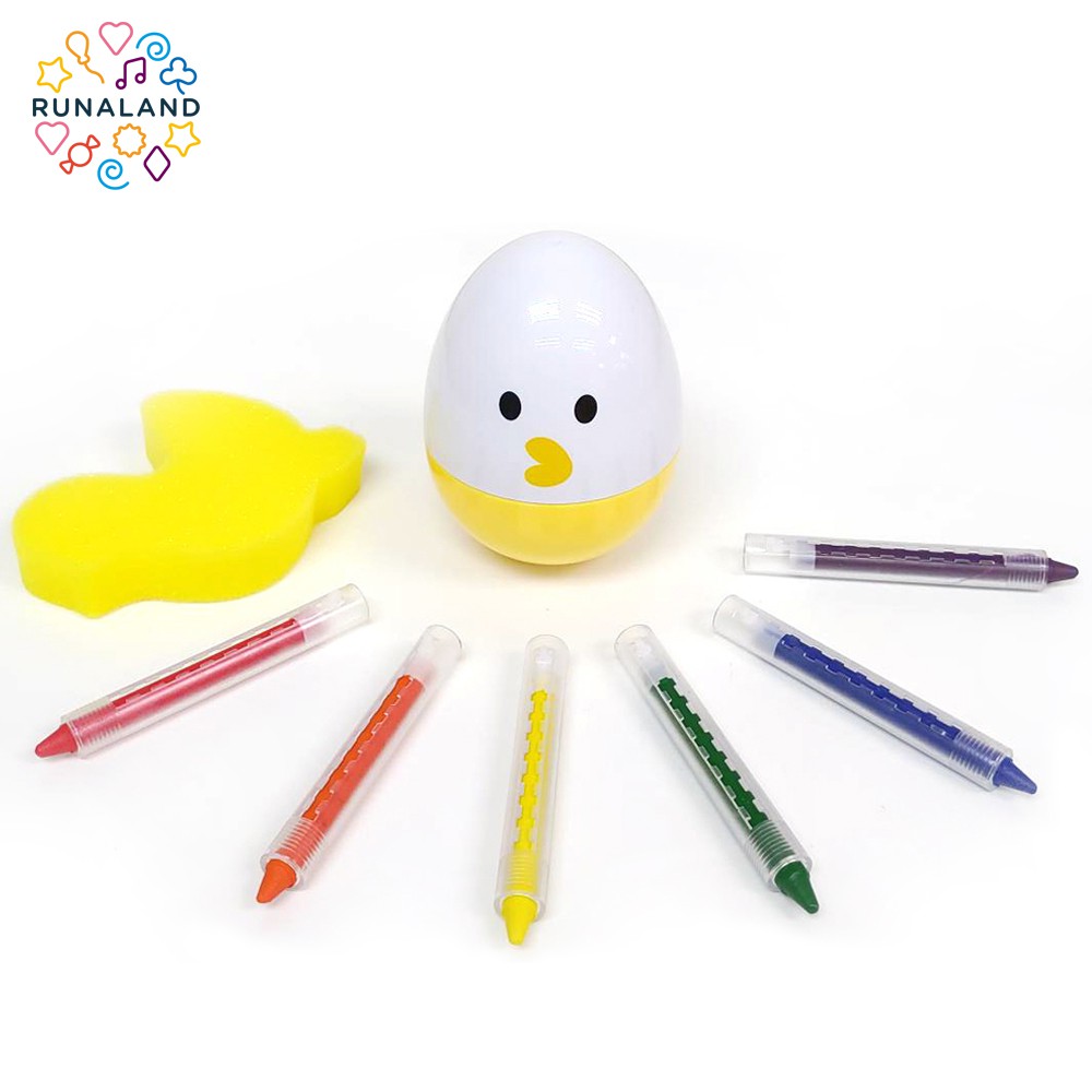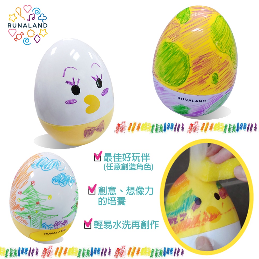 RUNALAND-創意彩繪不倒蛋組(不倒蛋+6色水洗無毒蠟筆+海綿) 兒童彩繪 幼兒玩具 好清洗 立體彩繪 聖誕禮物