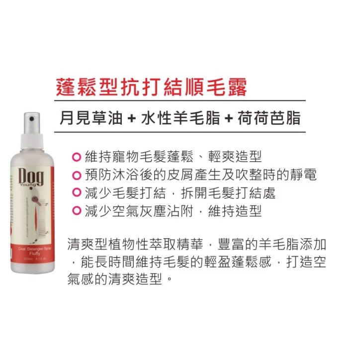 Dog Young 清爽澎鬆型寵物順毛露270ml/毛髮拆結/預防靜電/光亮柔順/寵物用