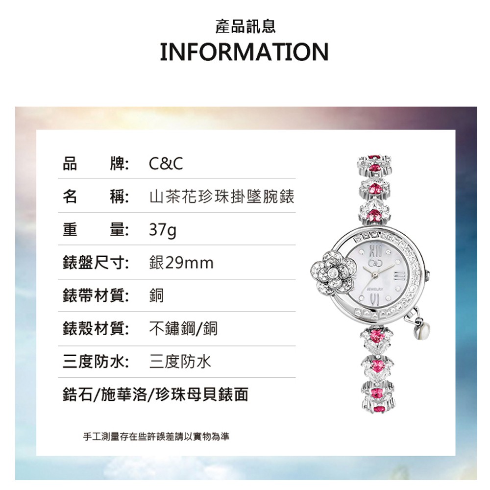 【C&C】山茶花珍珠掛墜腕錶(桃心粉/白鑽銀)_CC8122