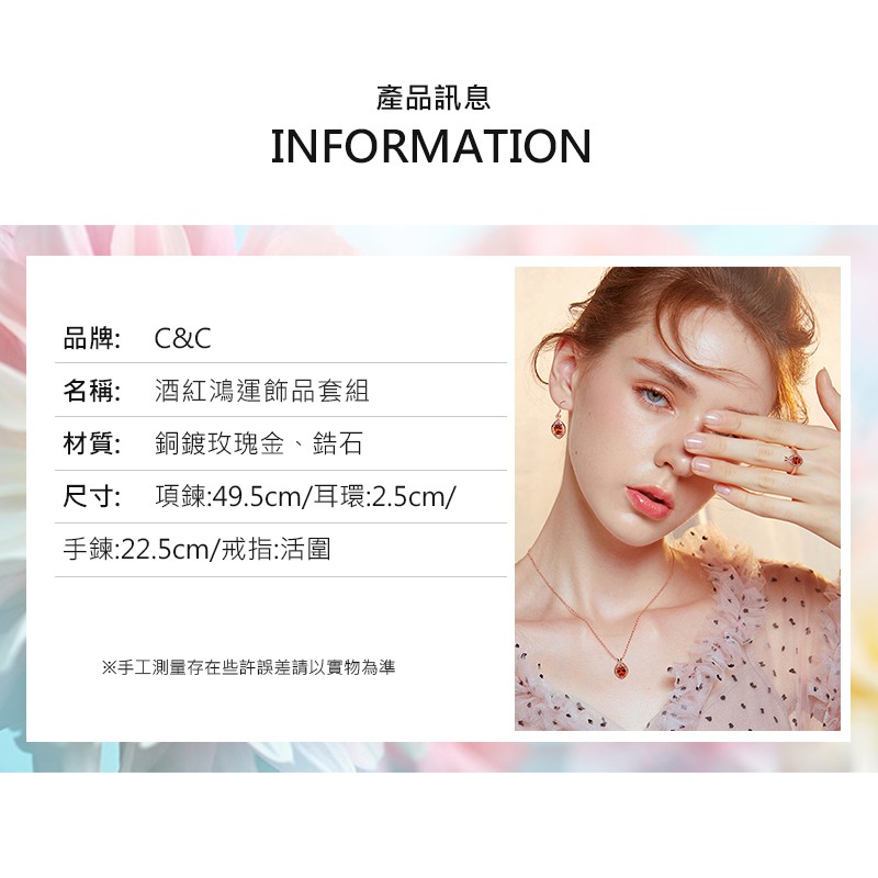 【C&C】酒紅鴻運飾品套組(項鍊/耳環/手鍊/戒指)_A-CCWZ007