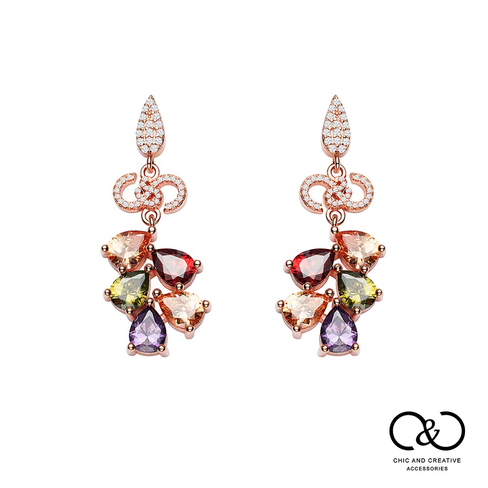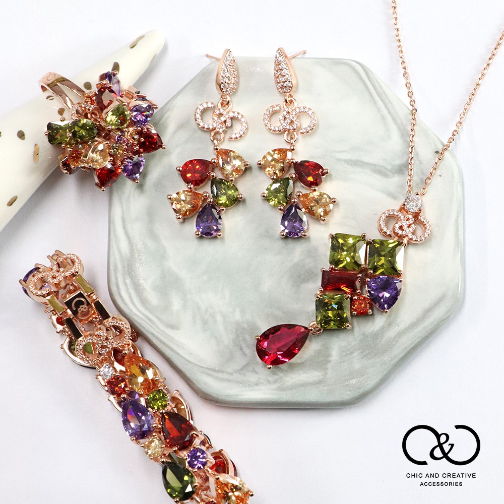 【C&C】奢華璀璨彩鑽套組(項鍊/戒指/耳環/手鍊)_A-CC-Z005