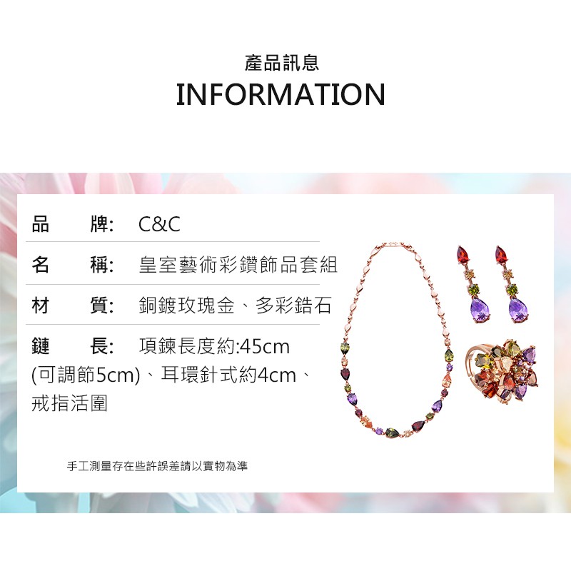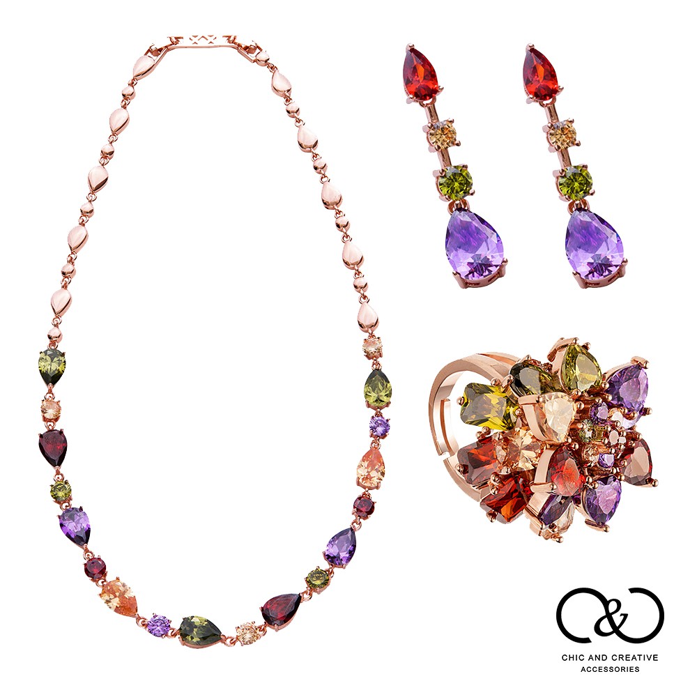 【C&C】皇室藝術彩鑽飾品套組(項鍊/戒指/耳環)_A-CC-WZ005