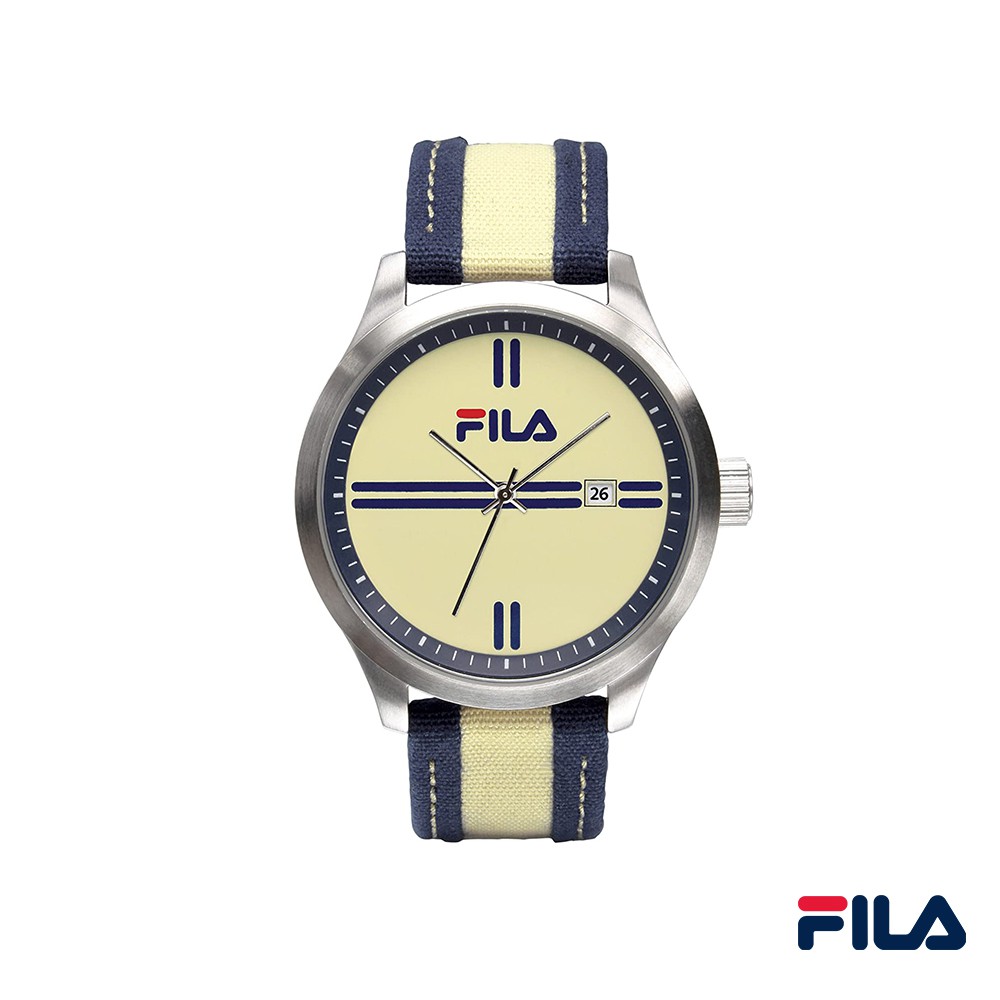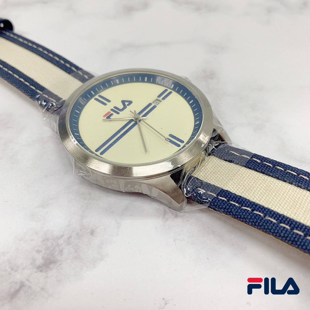 【FILA】經典藍米相間織布帶腕錶(圓形)_W-FI-008(福利品)