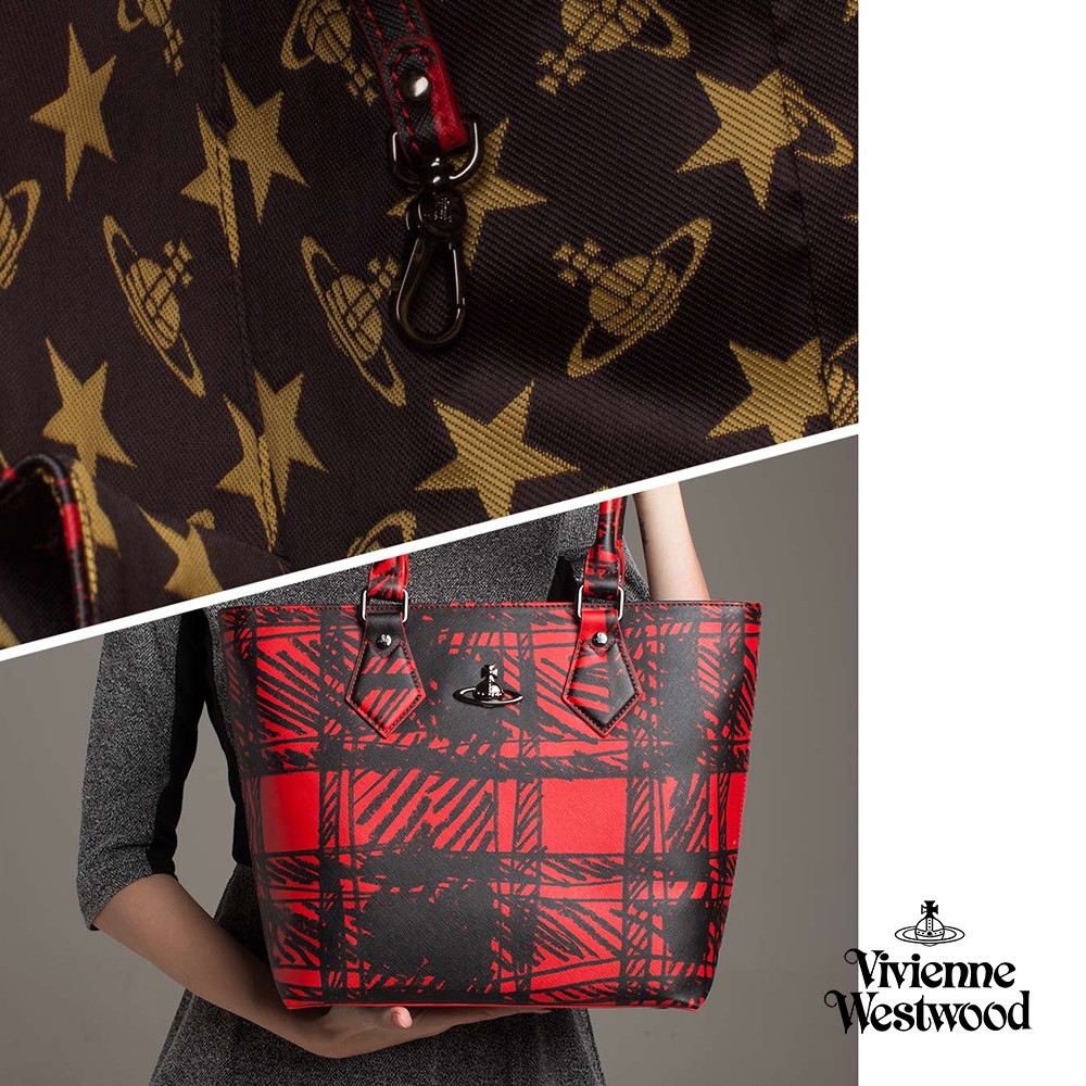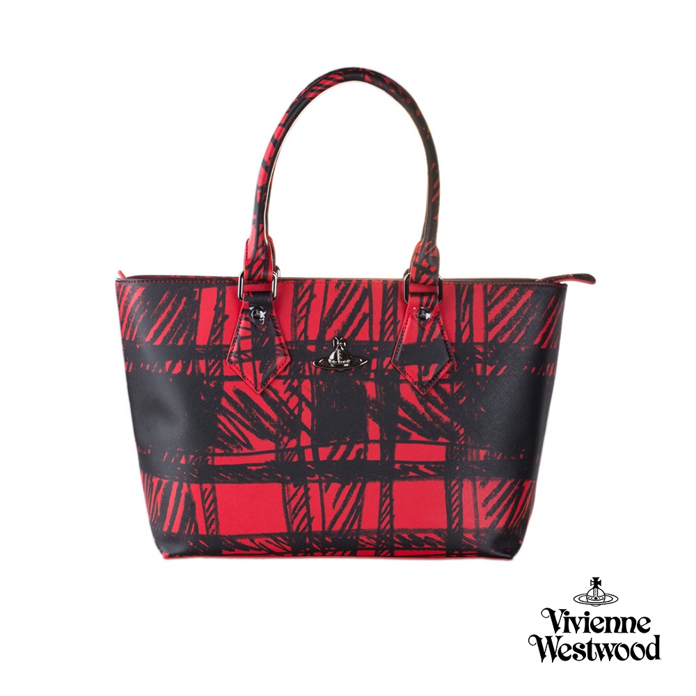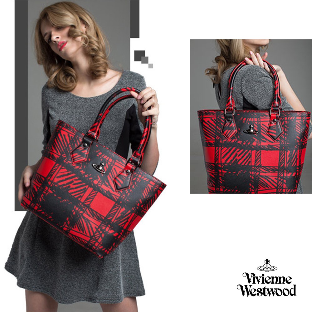 【Vivienne Westwood】格紋手提大背包(紅色/藍色)(瑕疵品)_P-VW-003-2