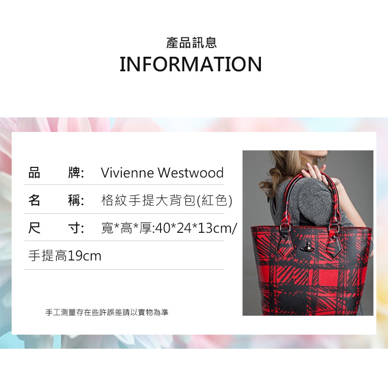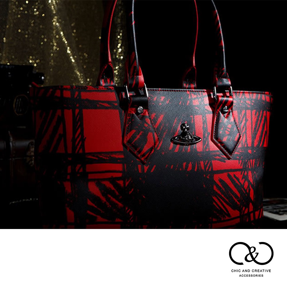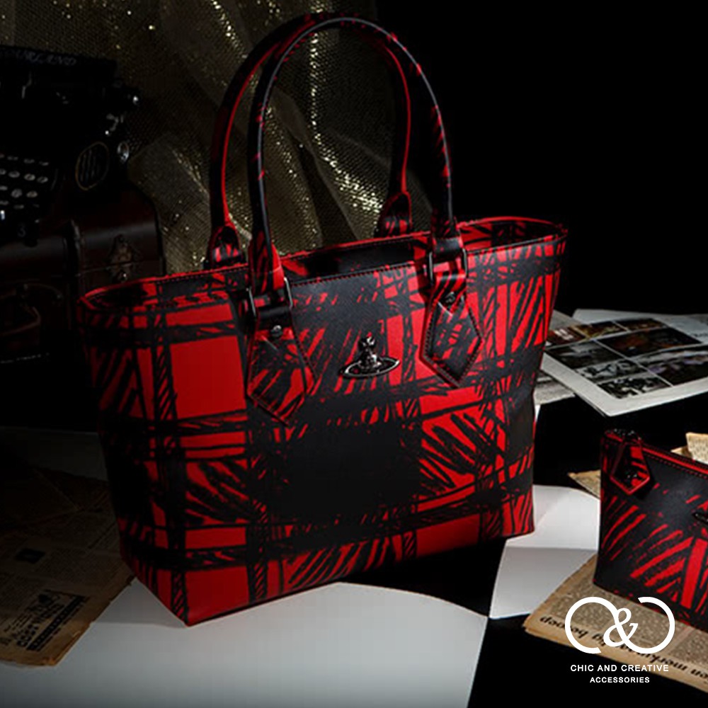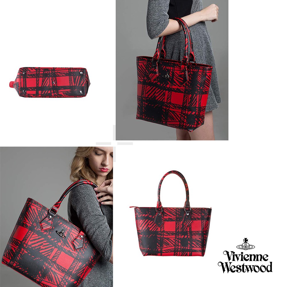 【Vivienne Westwood】格紋手提大背包(紅色/藍色)(瑕疵品)_P-VW-003-2