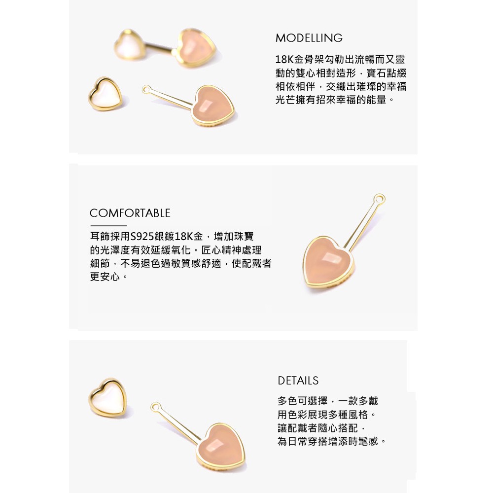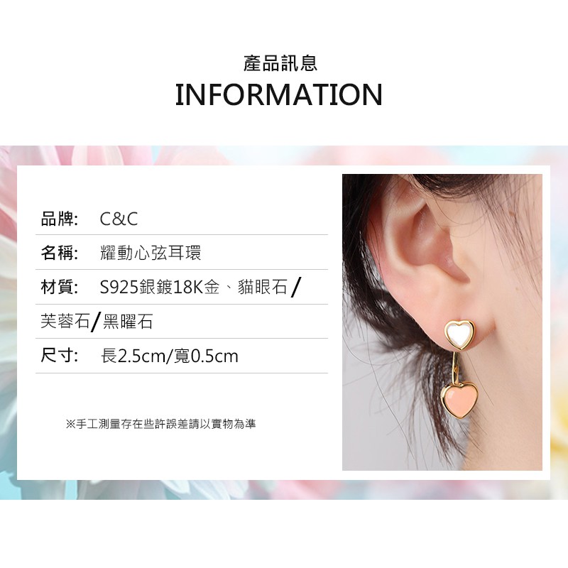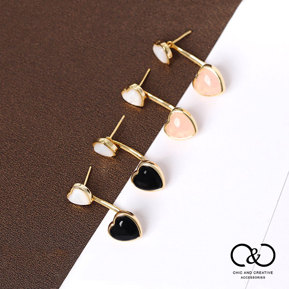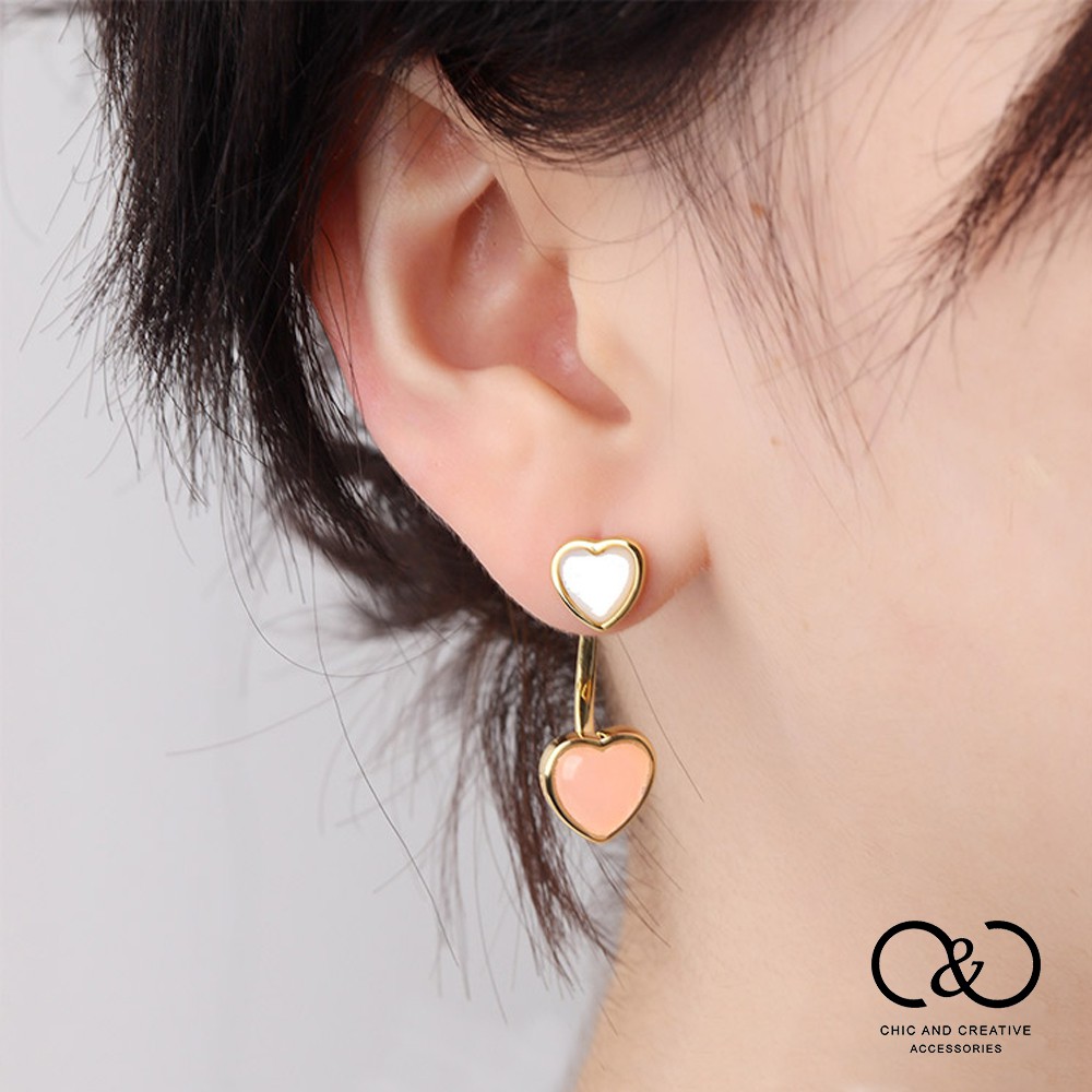 【C&C】雙層愛心耳釘(黑色/粉色)_E-CC-Y053