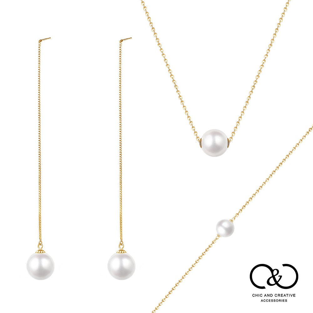 【C&C】施華洛水晶珍珠套組(項鍊大顆/手鍊大顆/耳環小顆)(白色)_A-CC-A021-1