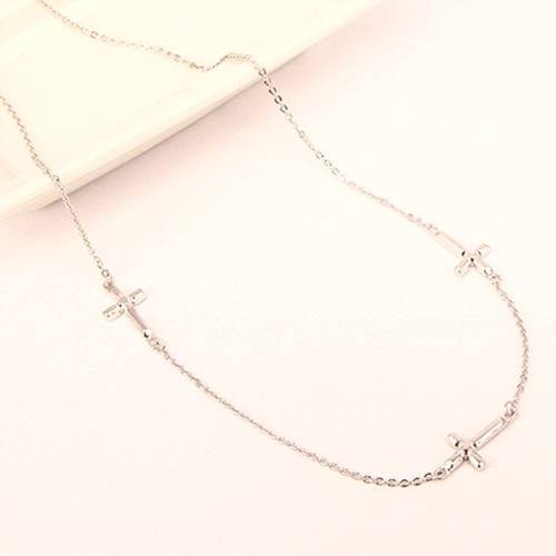 STORY故事銀飾-十字系列-堅信 純銀項鍊(白K金)
