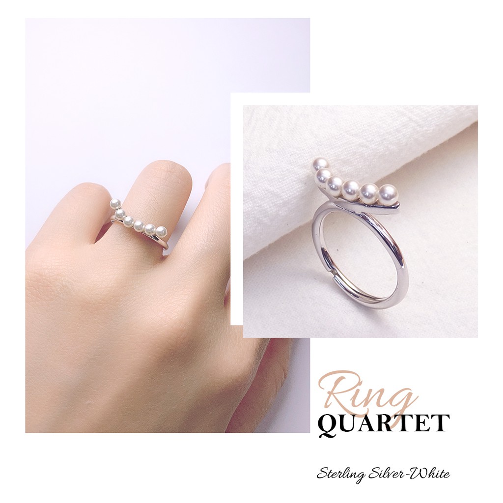 STORY故事銀飾-Quartet四重奏 施華洛世奇珍珠戒指(白K金)
