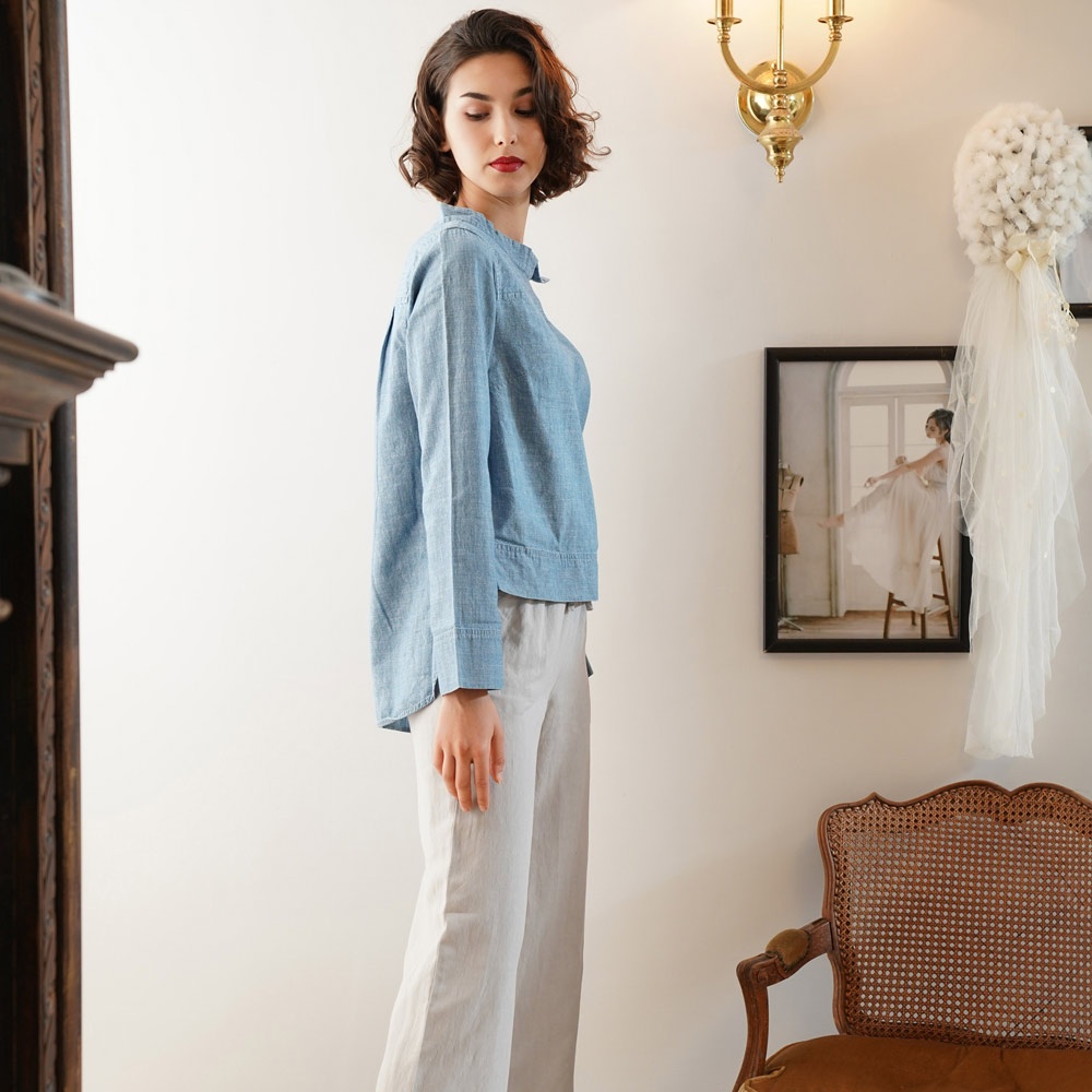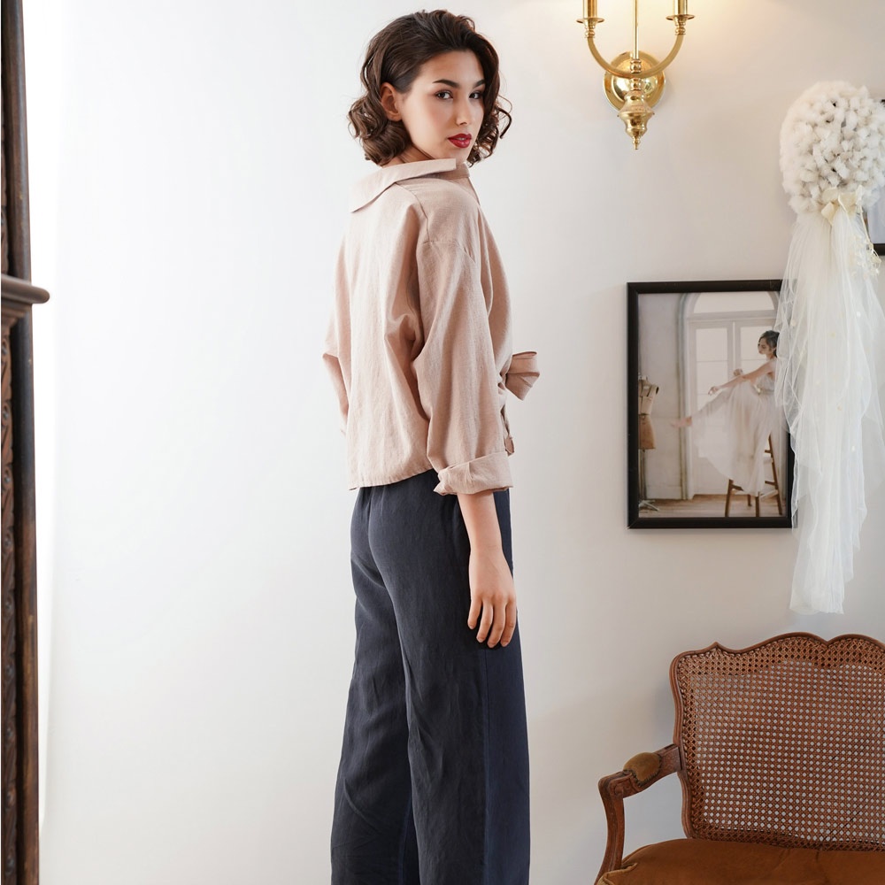 闕蘭絹舒適休閒蠶絲亞麻長褲-6634