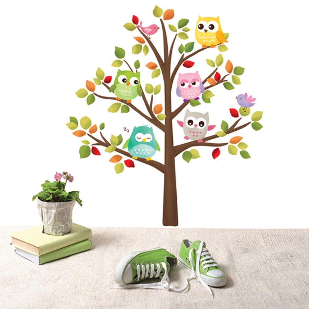 韓國Decoin大型創意壁貼 彩色貓頭鷹樹