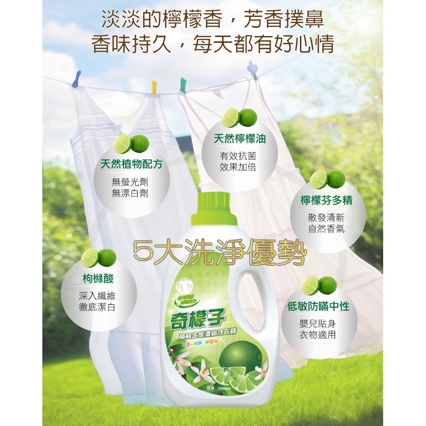 奇檬子天然檸檬生態濃縮洗衣精-2000ml瓶裝