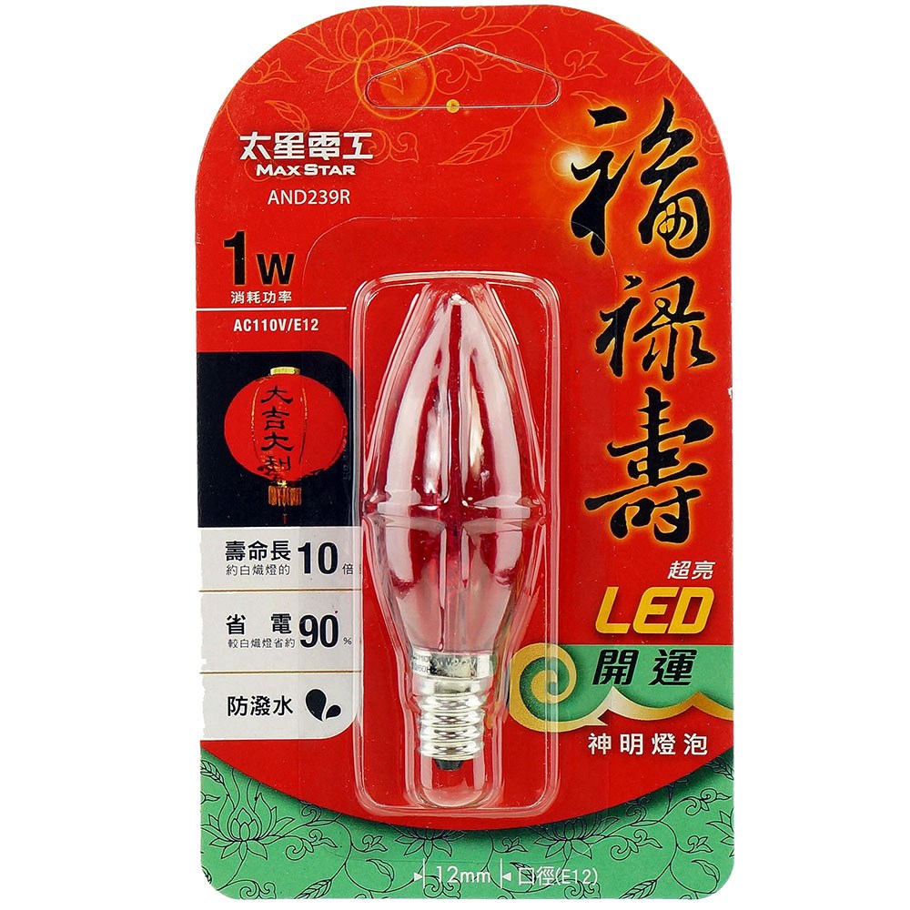 福祿壽超亮LED開運神明燈泡E12/1W/紅光