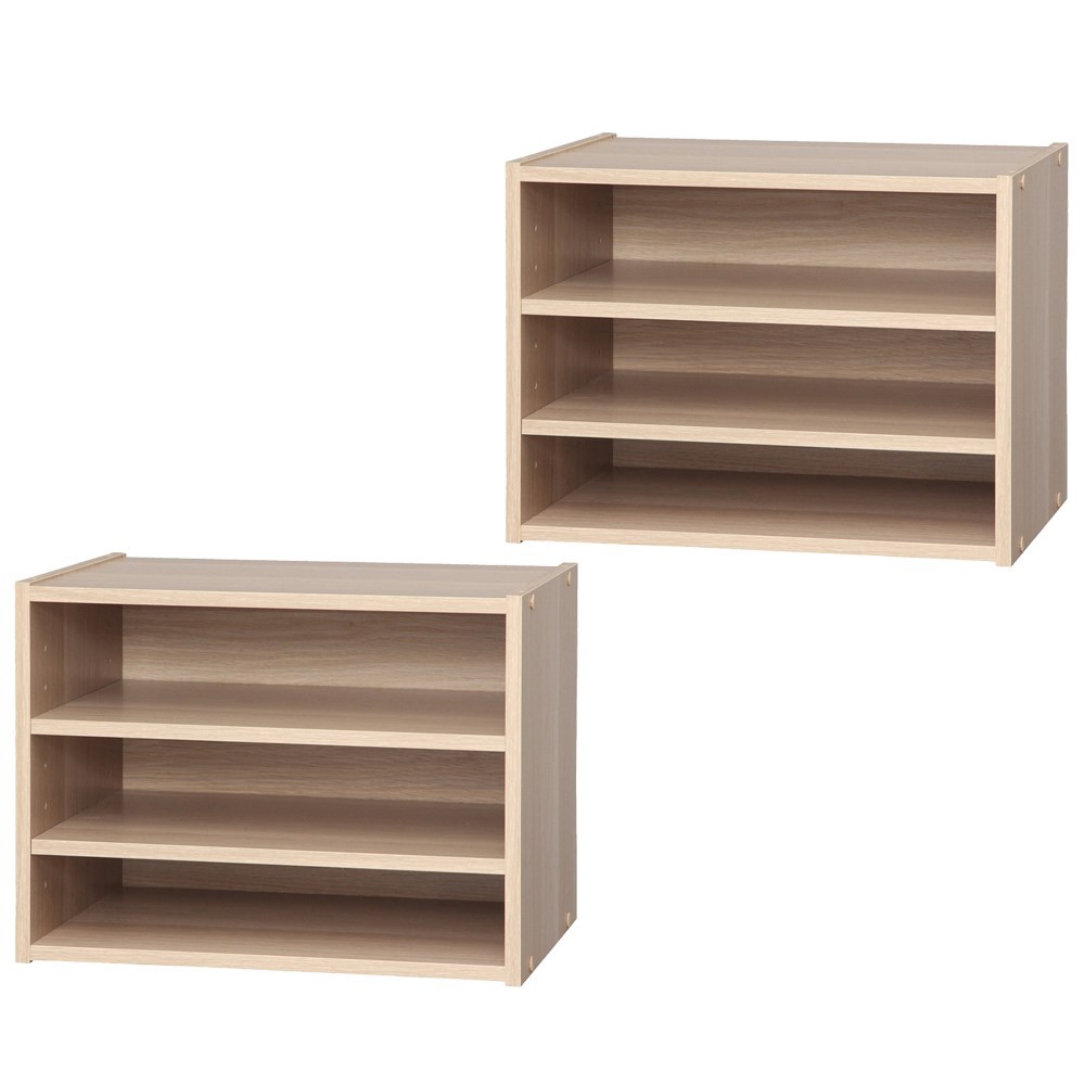 (組合) 日本IRIS 木質三格堆疊櫃 淺木色 2入 40x30cm