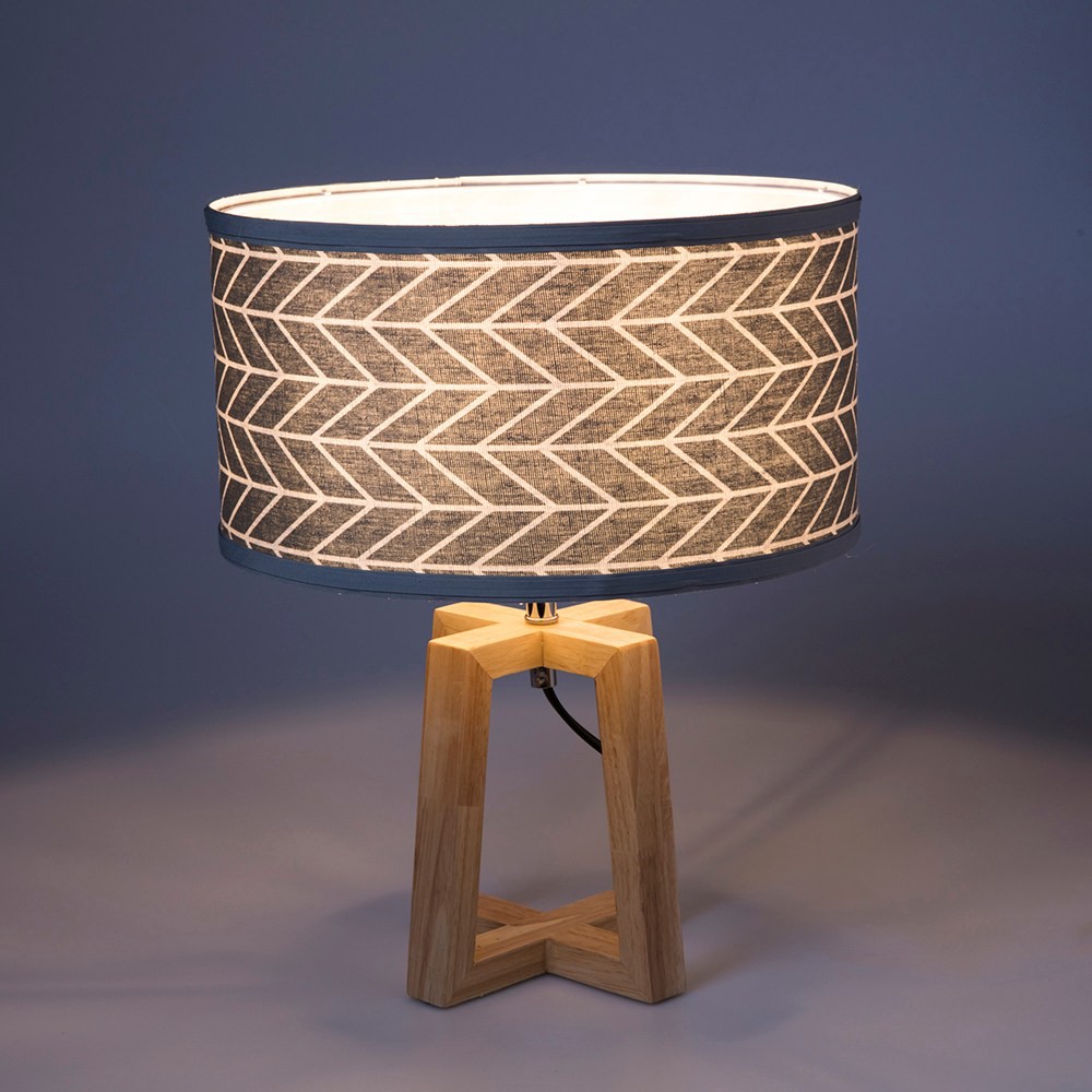 (組合) 特力屋 萊特木質檯燈 灰紋燈罩
