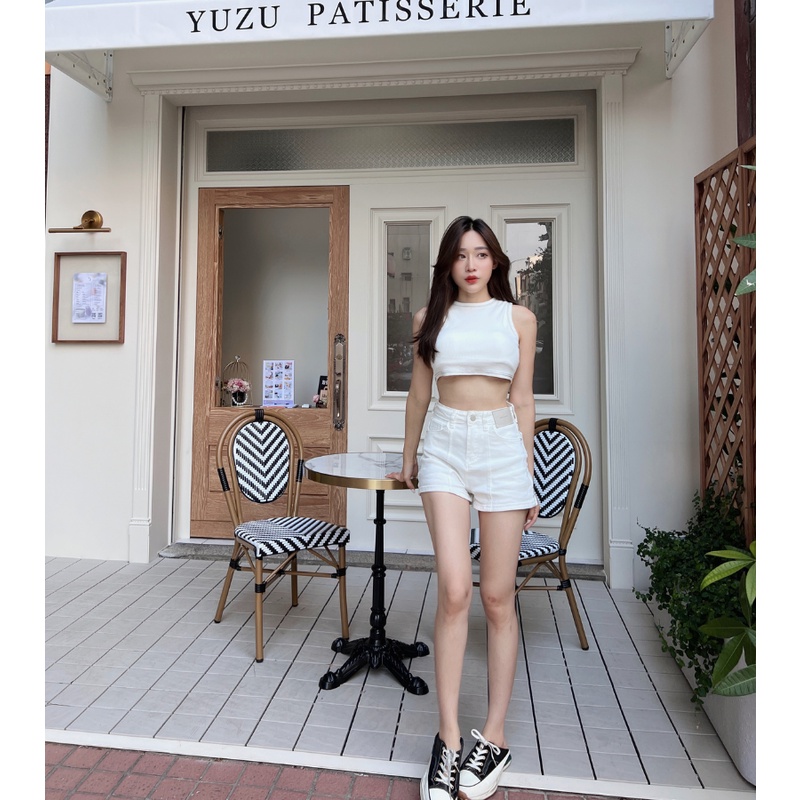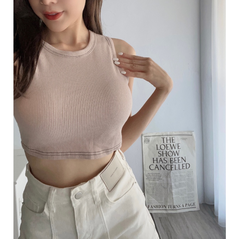 DOMISS 直角肩! 車線短版帶胸墊背心 短版修身上衣-5色 背心 T恤 削肩 韓國 (現貨)