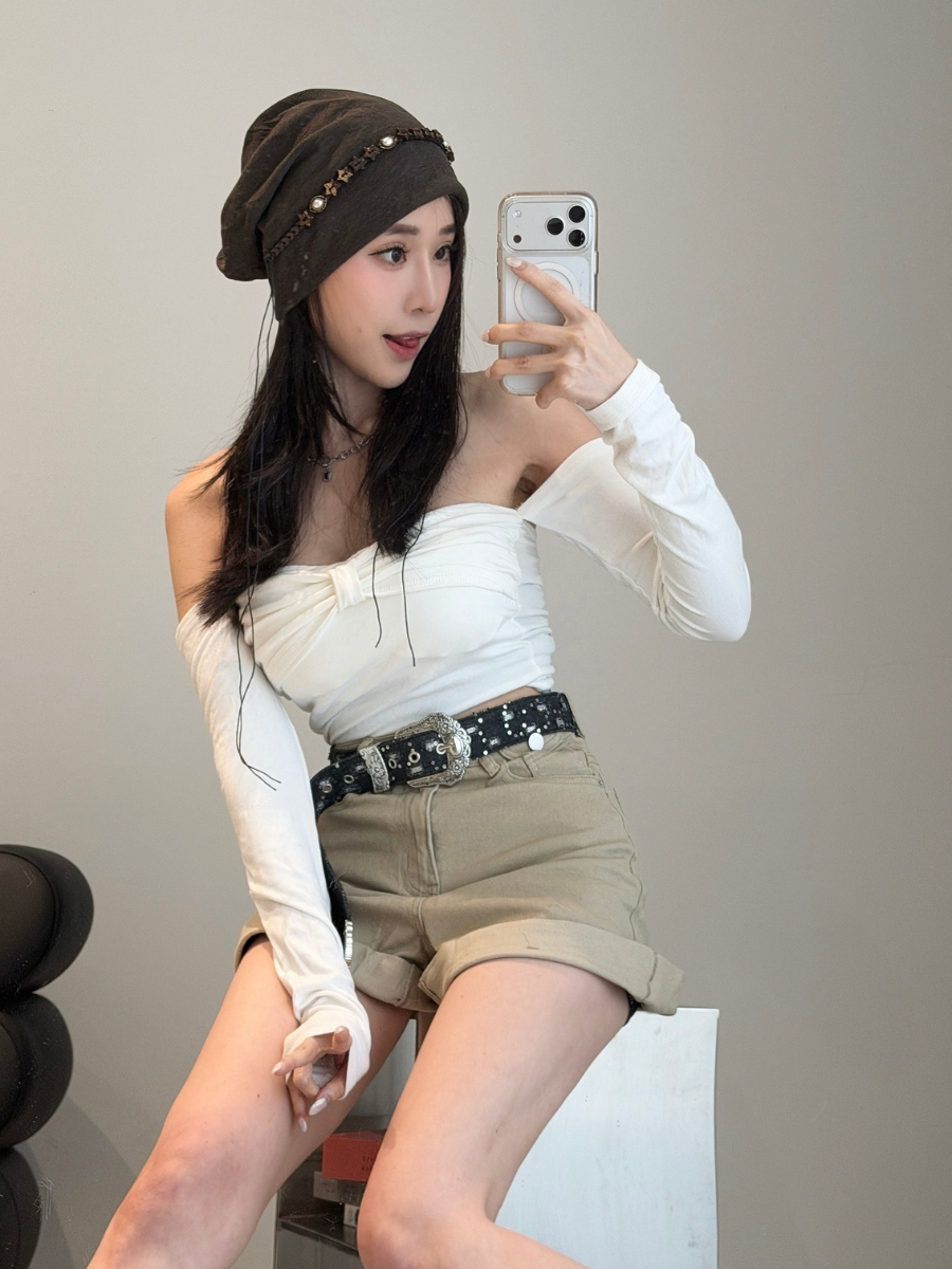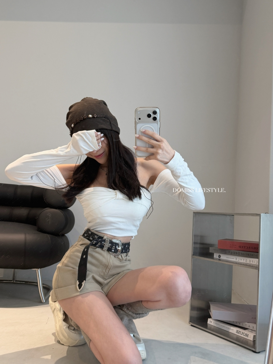 【隨性時髦 】DOMISS卡其色! 彈力反摺高腰短褲 (現貨)