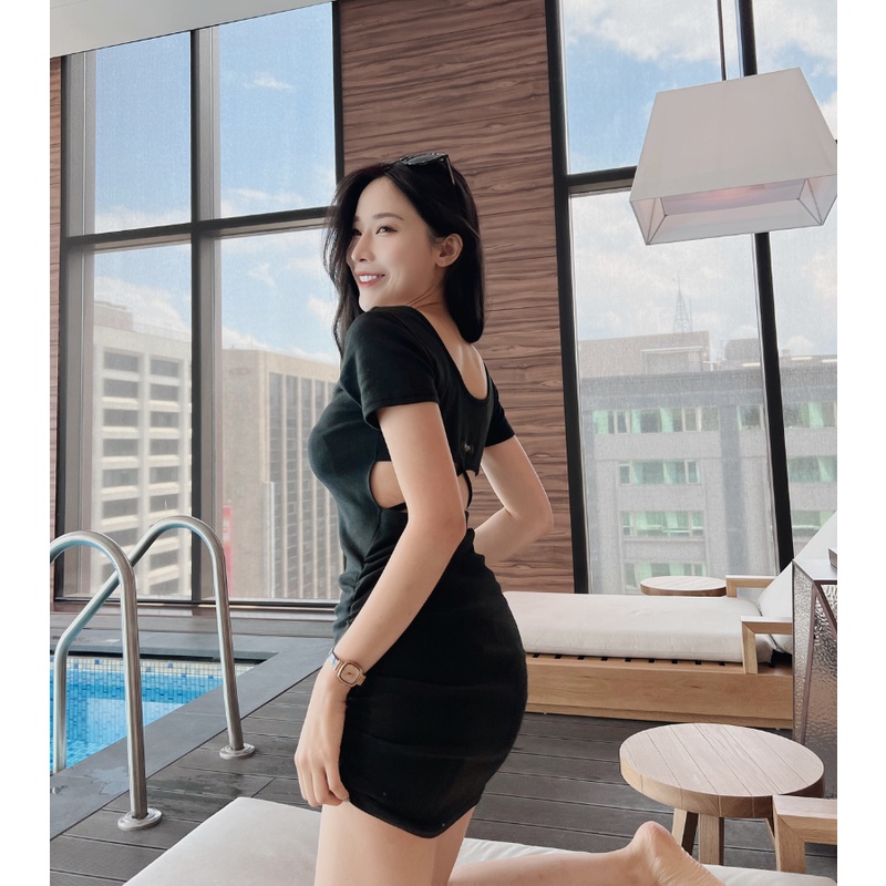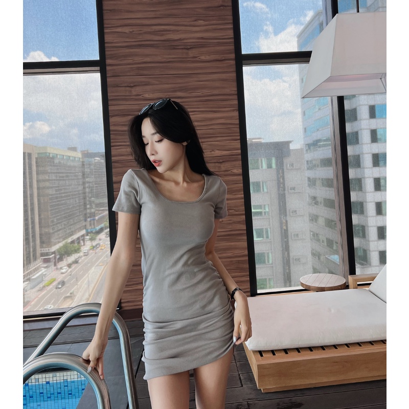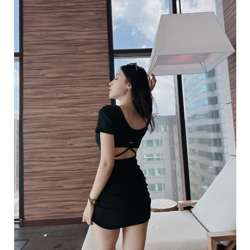 DOMISS 自訂款-大U領 性感交叉露背抓皺洋裝-2色 微辣 修身 美背 訂製 U字領 夏季 細節 約會穿搭 (現貨)