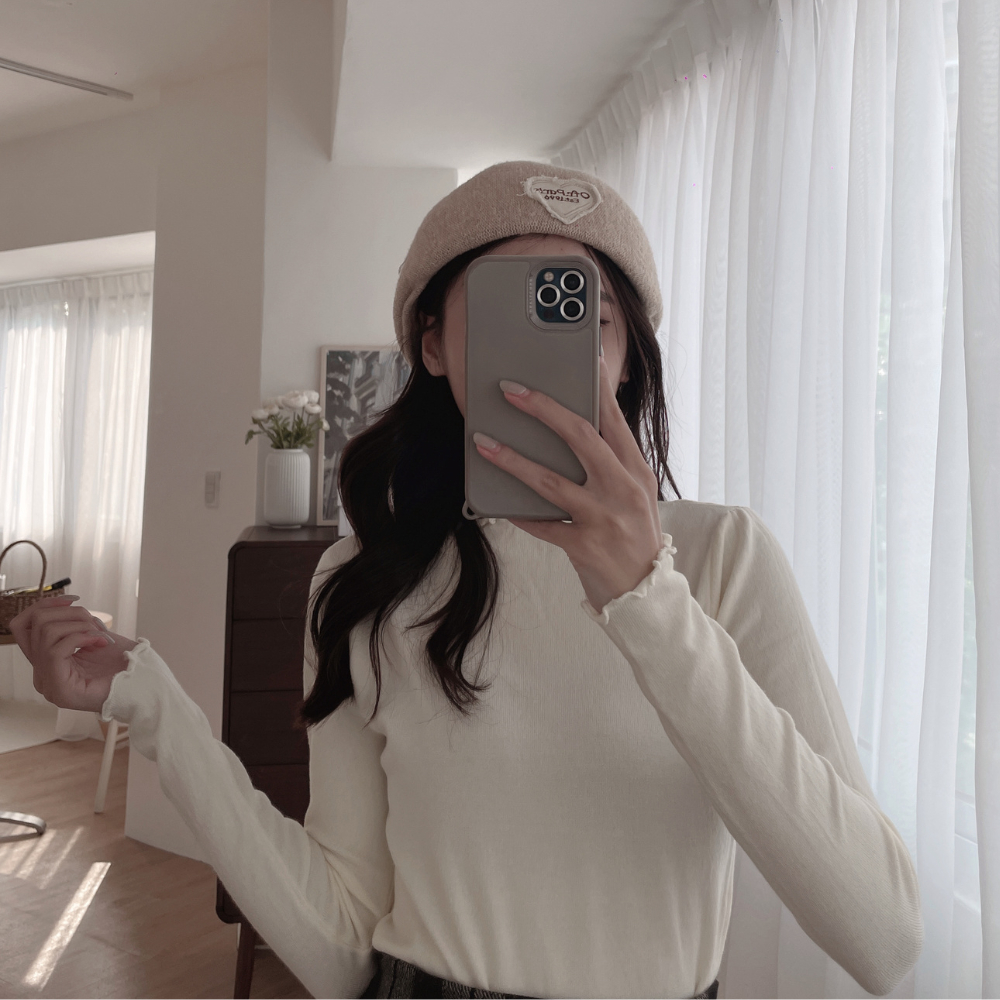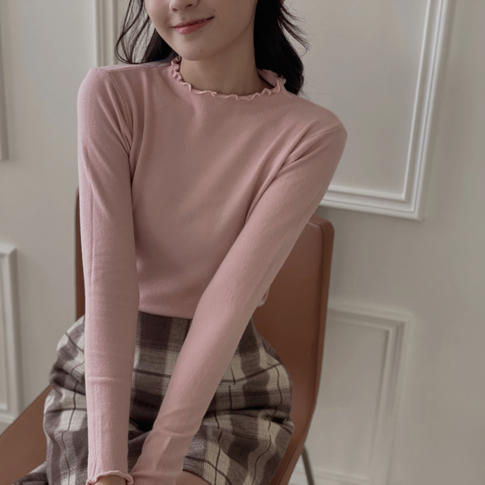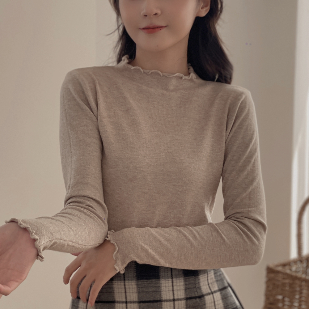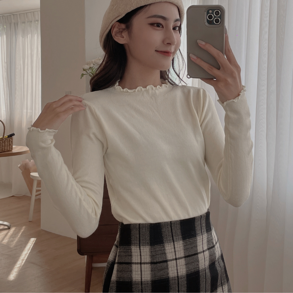 DOMISS 穿一件囤一件!木耳滾邊打底長袖上衣-4色 長袖 打底衣 內搭 秋冬內搭 (現貨)