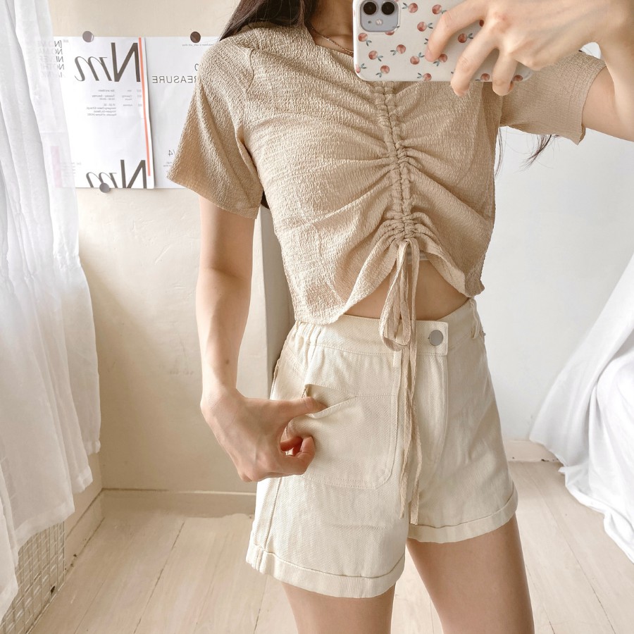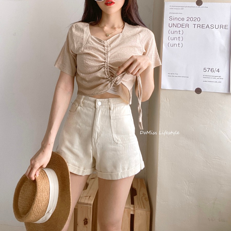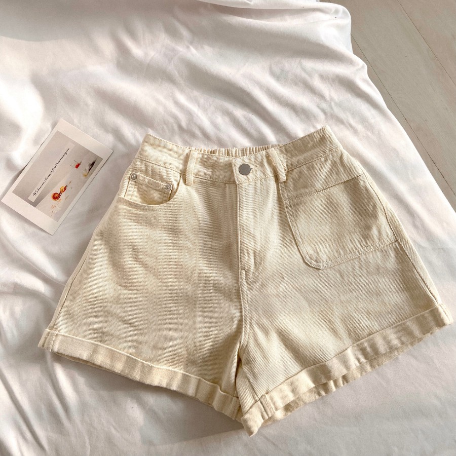 DOMISS奶油色! 彈性後鬆緊A字捲邊短褲 顯瘦短褲