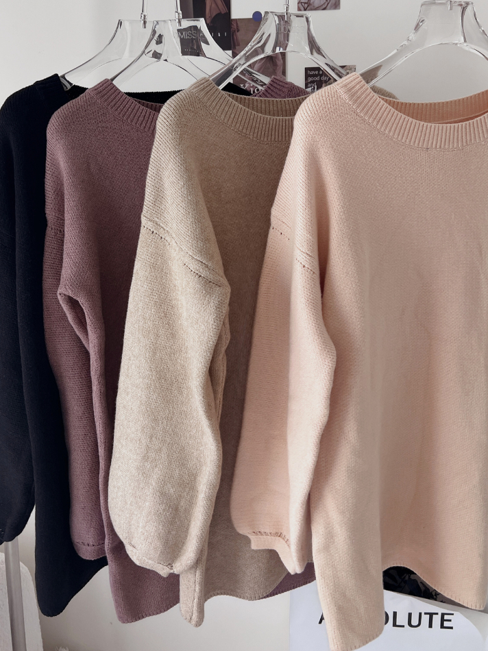DOMISS自訂款-附皮帶! 女神圓領澎袖綁帶毛衣洋裝-5色 毛衣裙(現貨)