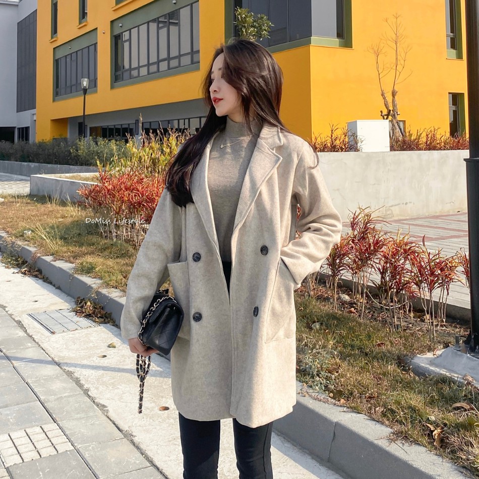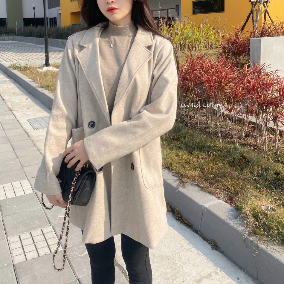 DOMISS韓國羊駝呢料中長版外套-2色 保暖 外套 大衣 (現貨)