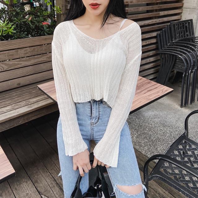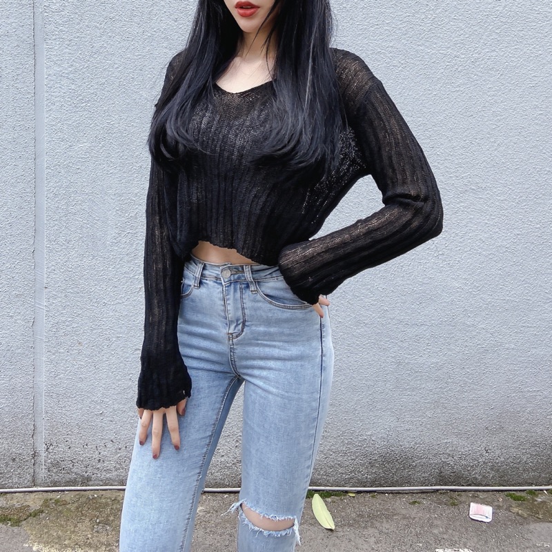 DOMISS 透膚V領短版針織罩衫 薄罩衫 針織 朵蜜絲 -2色 (現貨)