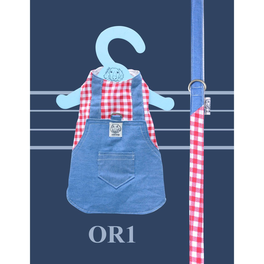 【Among】寵物胸背衣 紅格吊帶褲 _ 狗狗衣服 寵物衣服 貓衣服 背帶 寵物外出