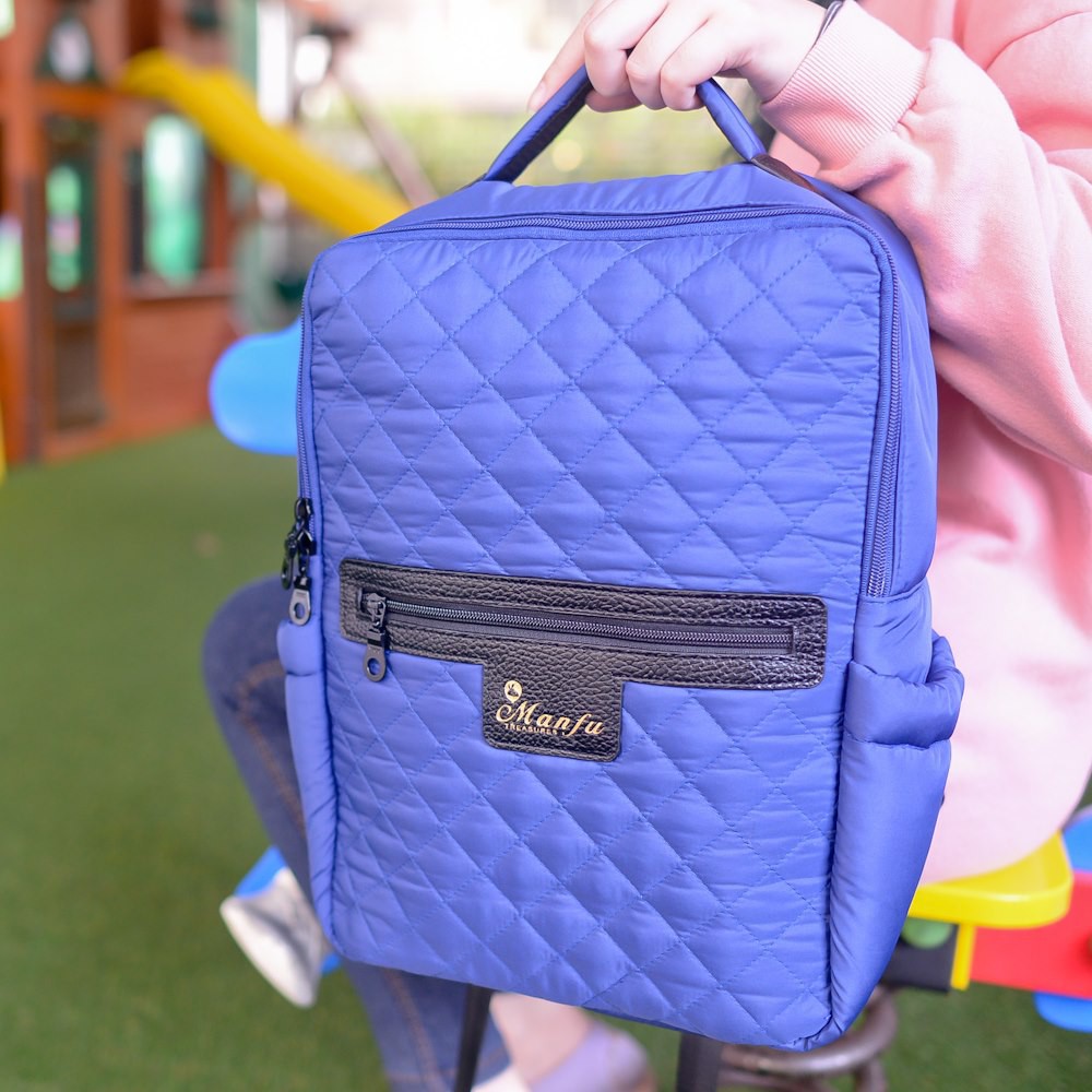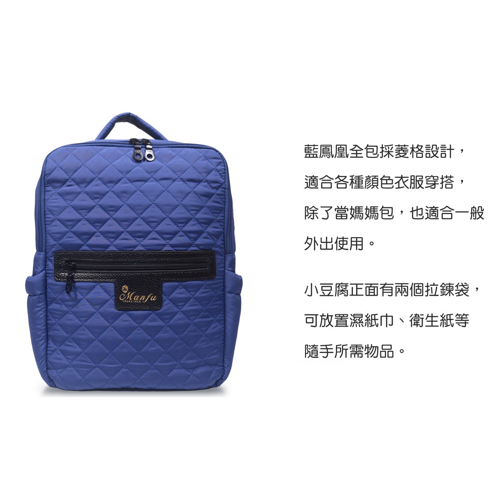【Manfu Treasures 滿福寶】小豆腐藍鳳凰 小香風英倫菱格紋 A4筆電書本皆可放 附胸扣